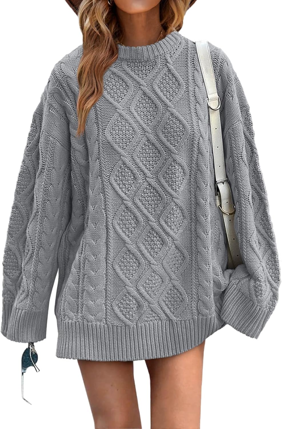 Saodimallsu Womens Oversized Sweaters Cable Knit Chunky Crew Neck Long Sleeve Loose Tunic Pullover Sweater