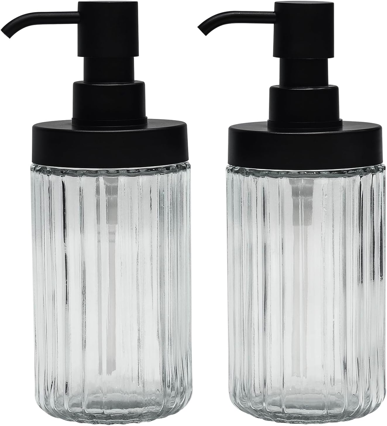 2 PCS Glass Soap Dispenser Set for Bathroom & Kitchen Sink Refillable Liquid Soap Bottle with Squeeze Pump for Hand Dish Soap, Shower Gel, Shampoo and Conditioner-425ML