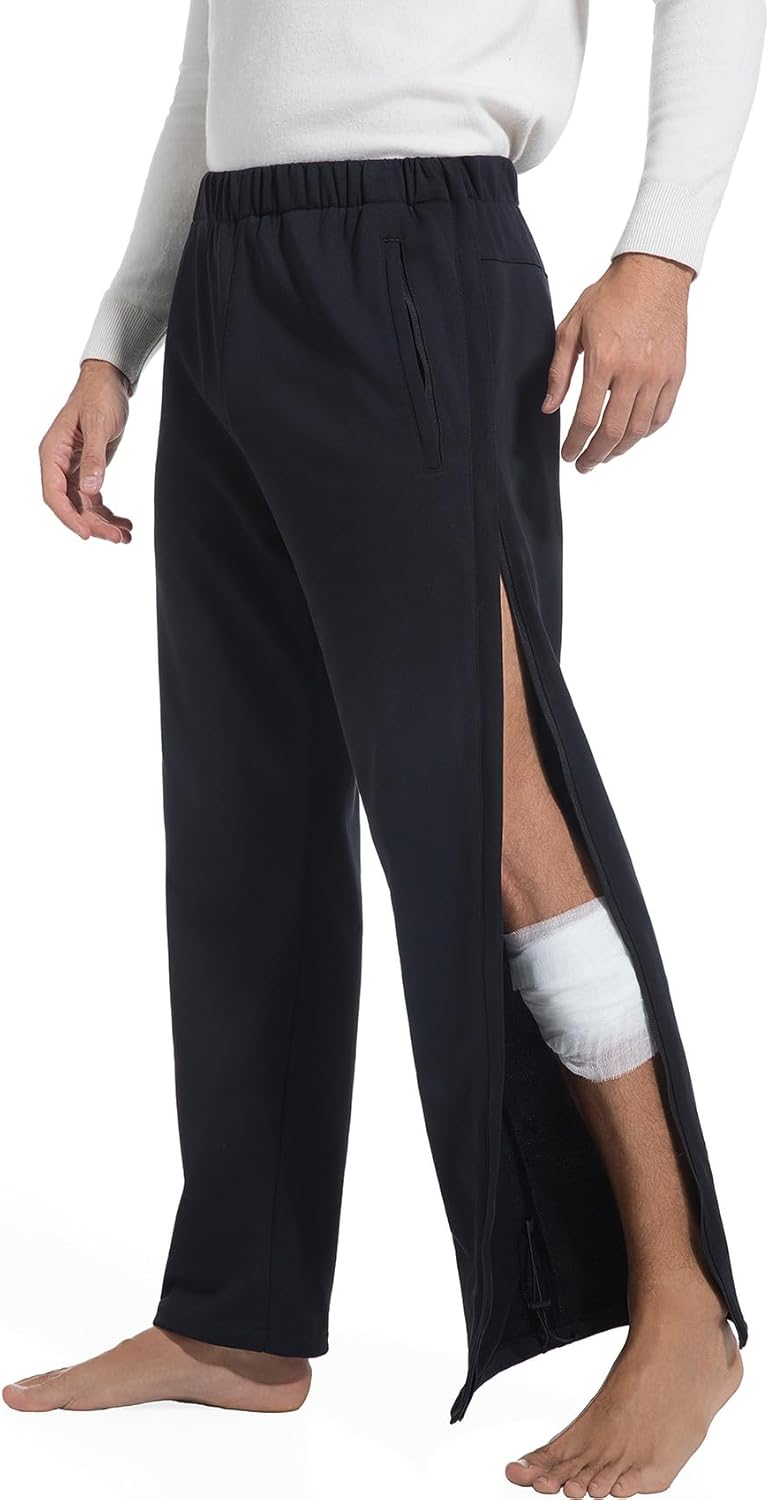 Mens Tear Away Pants Full Zipper Legs Open Bottom Sweatpants Breakaway Post Surgery Pants