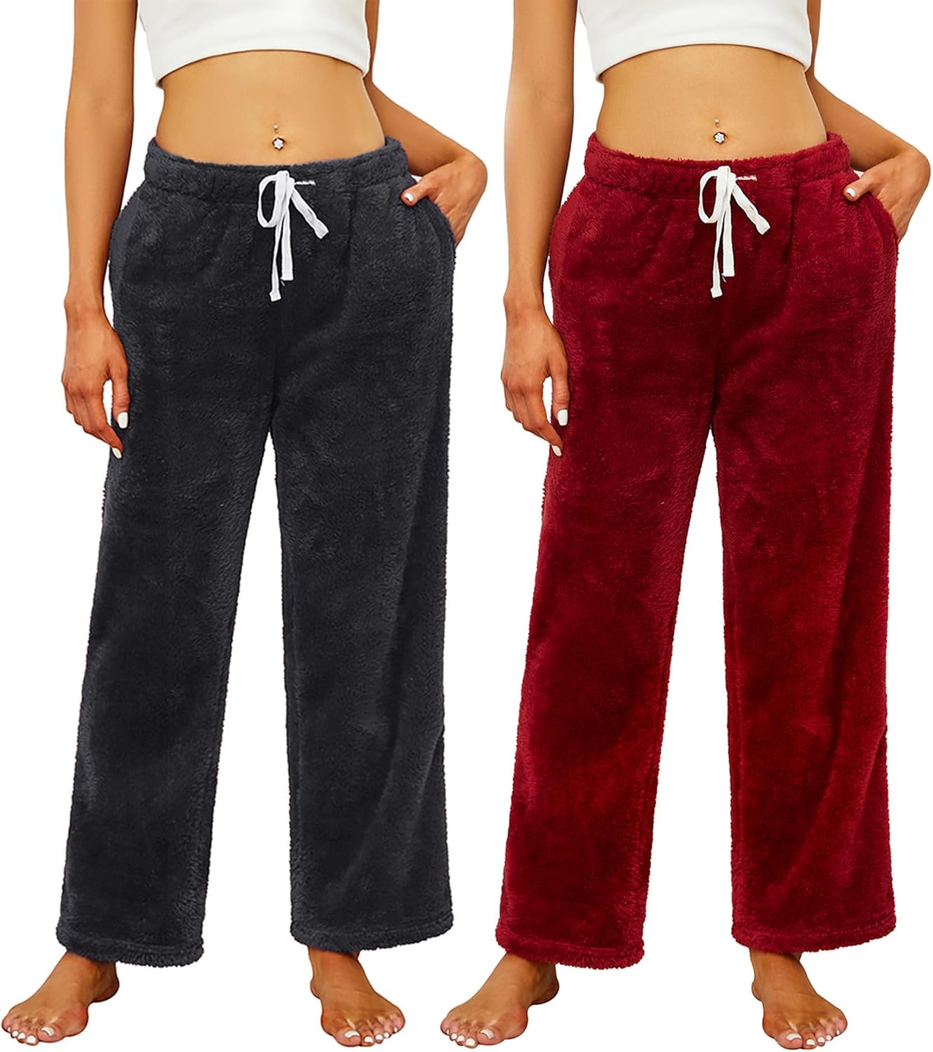 HEARTNICE 2 Pack Women's Warm Plush Pajama Pants Soft Fluffy Pajama Sleep Pants Comfy Fuzzy Pj Bottoms