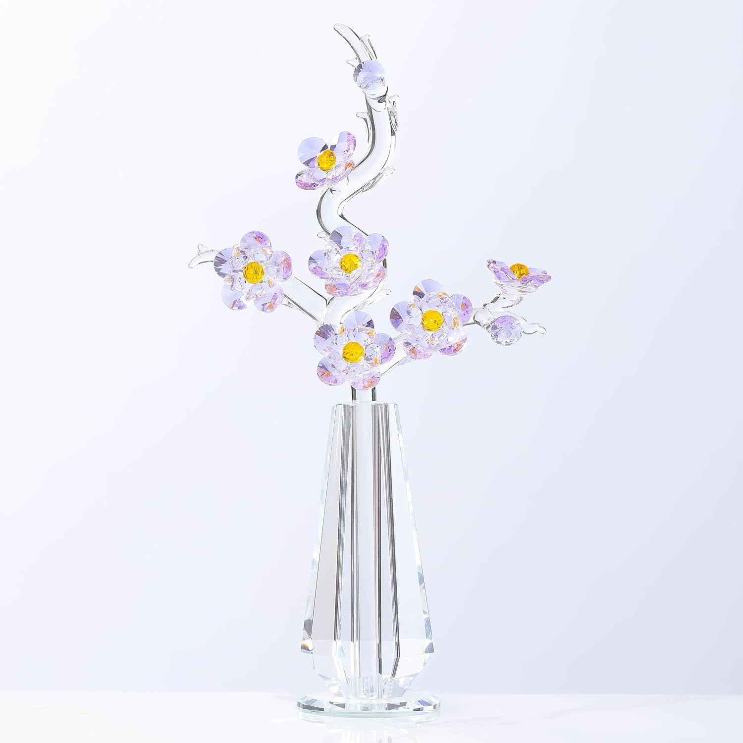 Purple Cherry Blossom Crystal Flowers with Stems - Glass Flowers with Vases Japanese Cherry Gifts Decor for Wife Girlfriend Women - Crystal Collectible Home Table Decor for Valentines Wedding Gifts