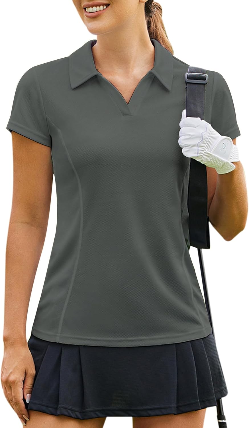 PINSPARK Womens Golf Shirt Short Sleeve Polo Shirts Quick Dry Tennis Tops V-Neck with Collar Pickleball Shirts Golf Outfits