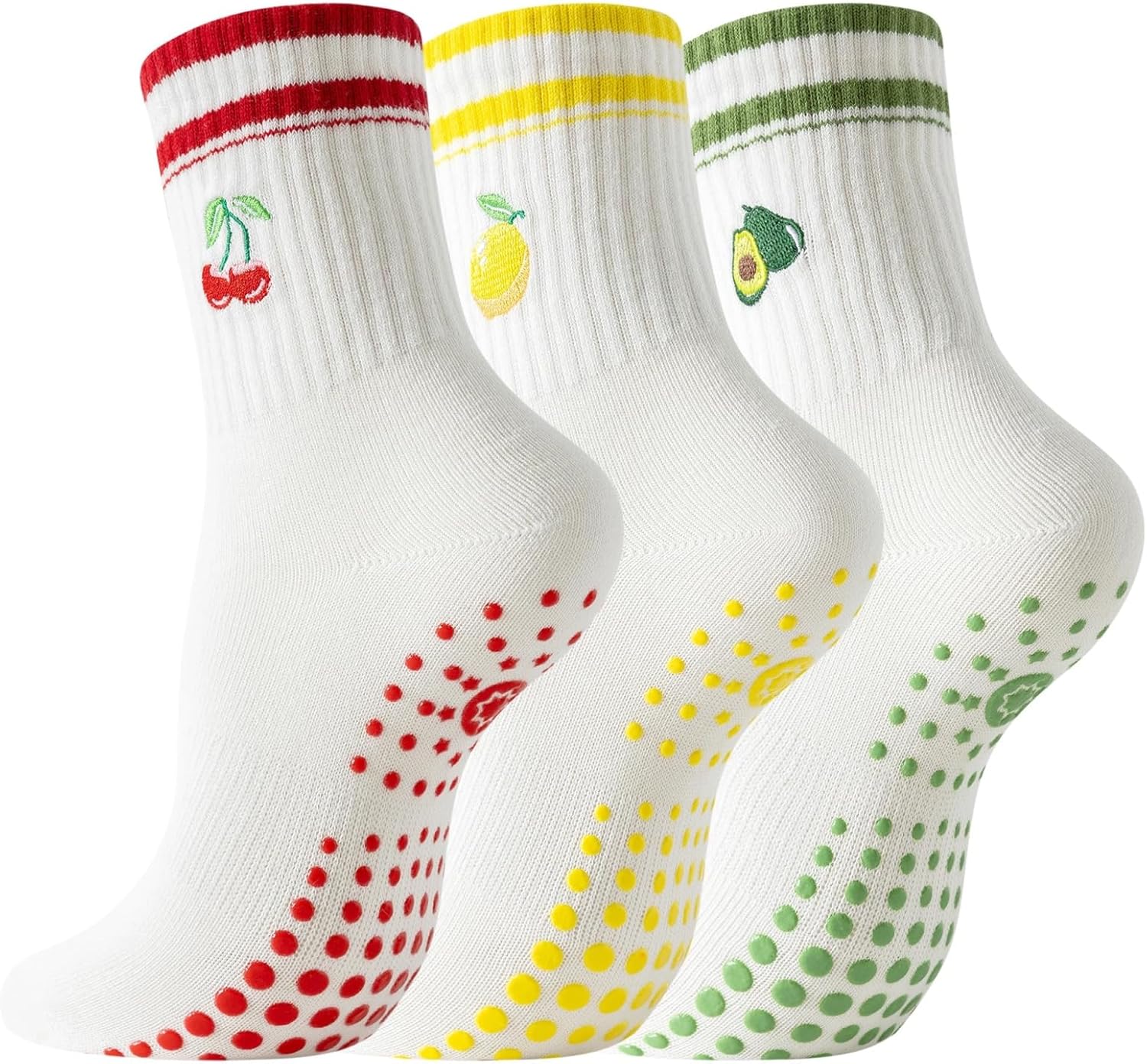 BONANGEL Pilates Socks with Grips for Women, 3 Pairs Womens Non Slip Grippy Cute Cotton Yoga Ballet Barre Workout Socks