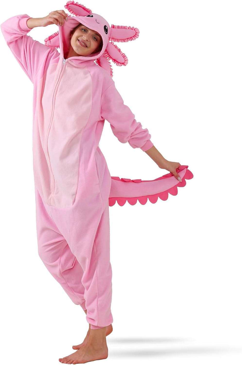Axolotl Animal Adult Onesie Pajamas Cosplay Halloween Costume Sleepwear Jumpsuit Costume for Women Men L Pink