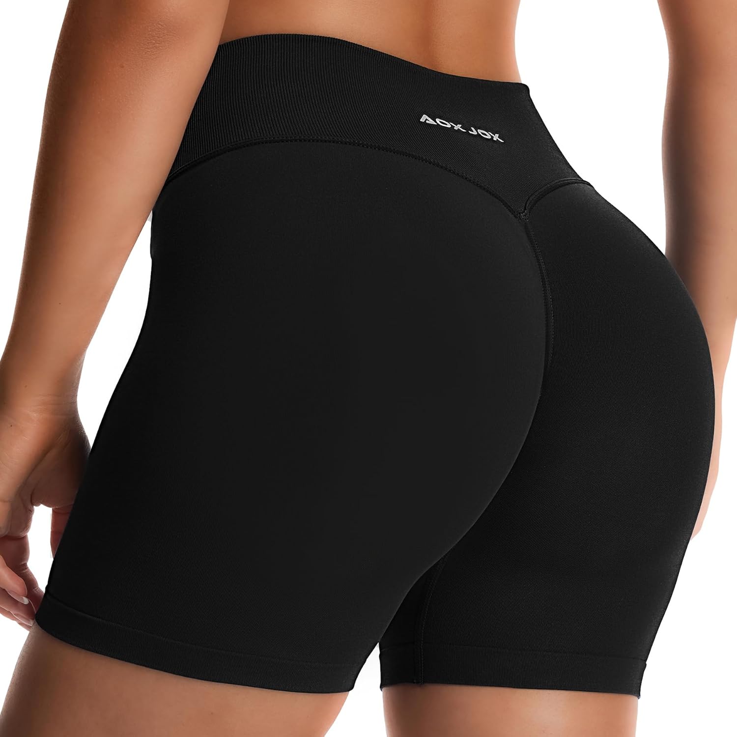 Aoxjox Refine Seamless Workout Biker Shorts for Women Low Waisted Hidden Scrunch Athletic Running Yoga Short 5"