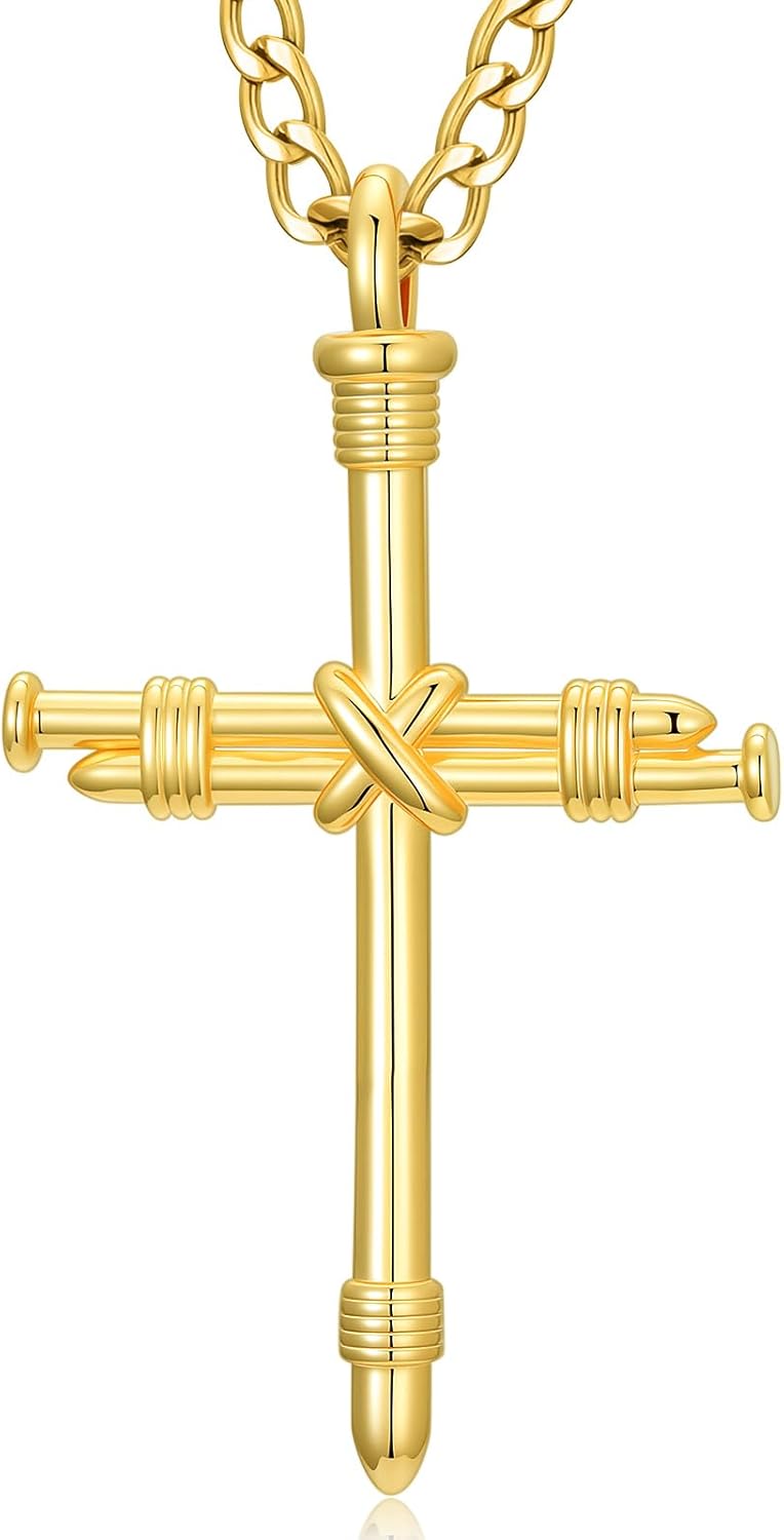 Nail Cross Necklace for Men 18K Gold Cross Pendant Chain Christian Jewelry Religious Gift