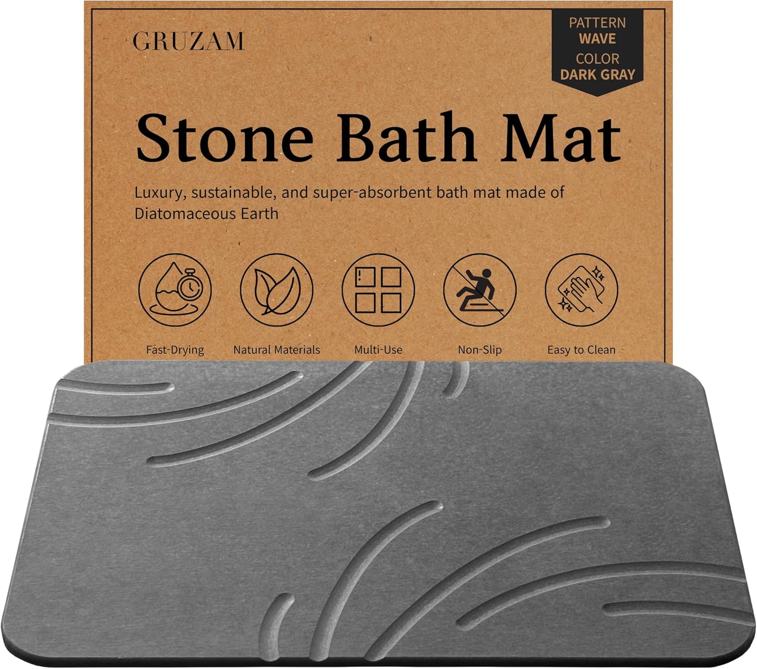 - 【Super Absorbent & Fast Drying (Diatomaceous Earth)】 Super absorbent stone bath mat made from diatomaceous earth—this diatomaceous earth bath mat features a porous surface that absorbs water instantly and dries quickly. A great bath mat stone absorbing solution for keeping your floor clean and dry after every shower.