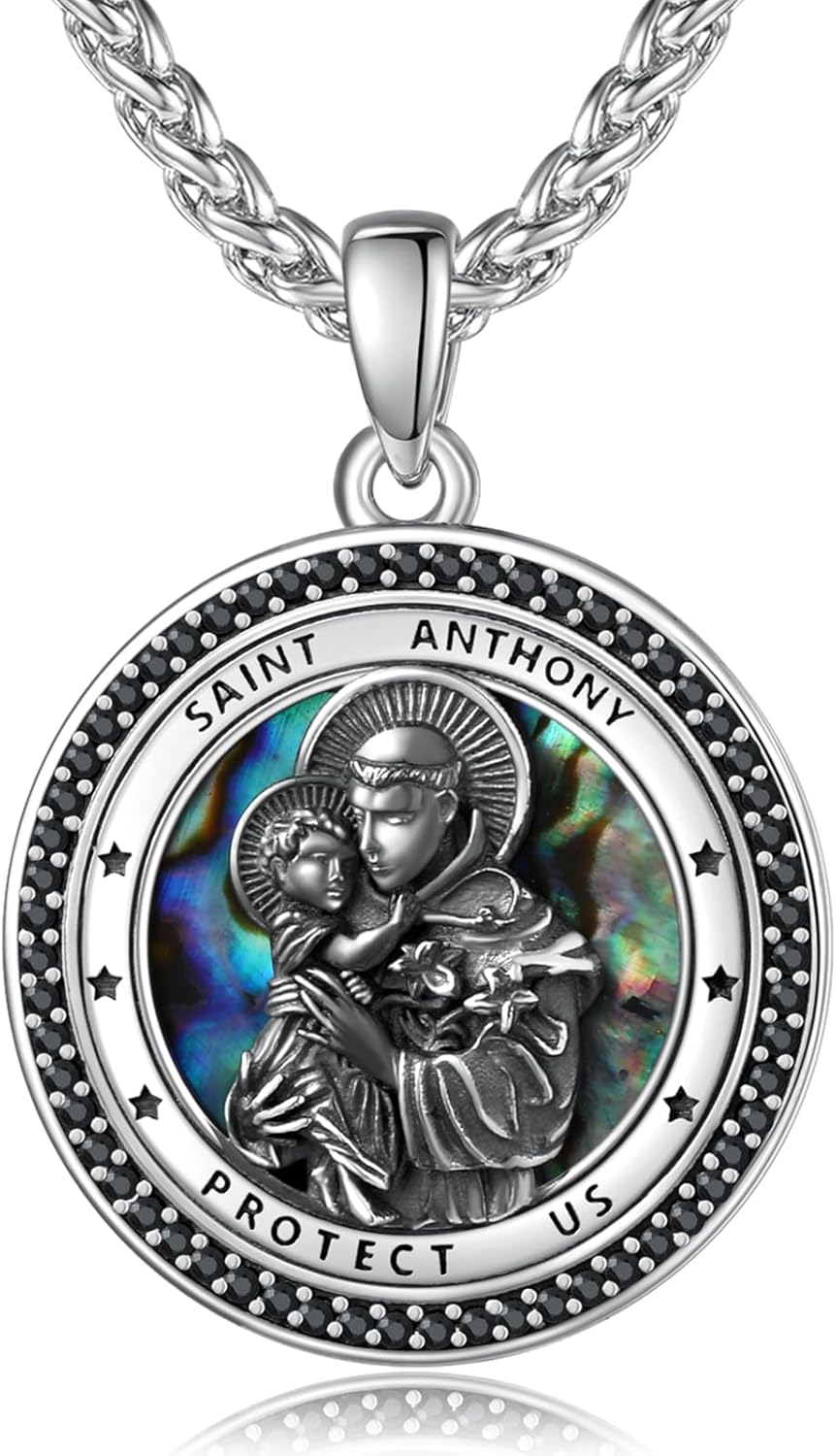 St Anthony Medal 925 Sterling Silver St Saint Anthony Necklace for Men Women Religious Gifts
