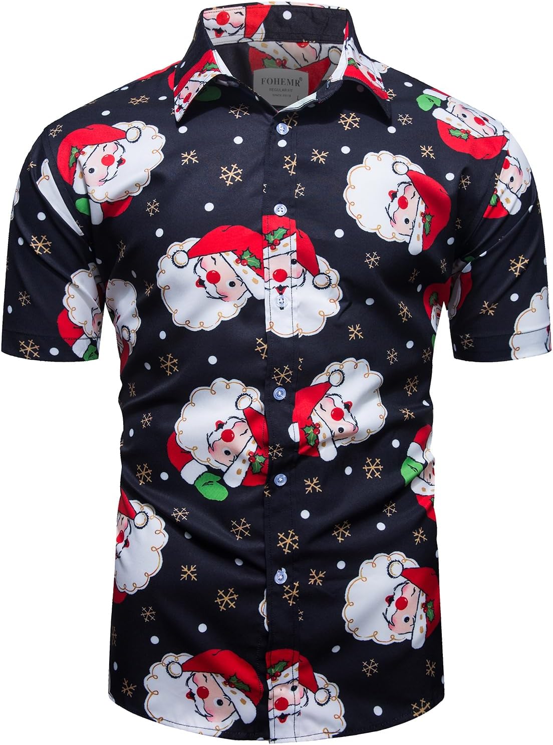 Men Ugly Christmas Button Down Shirt Funny Santa Claus Holiday Hawaiian Short Sleeve Dress Shirt