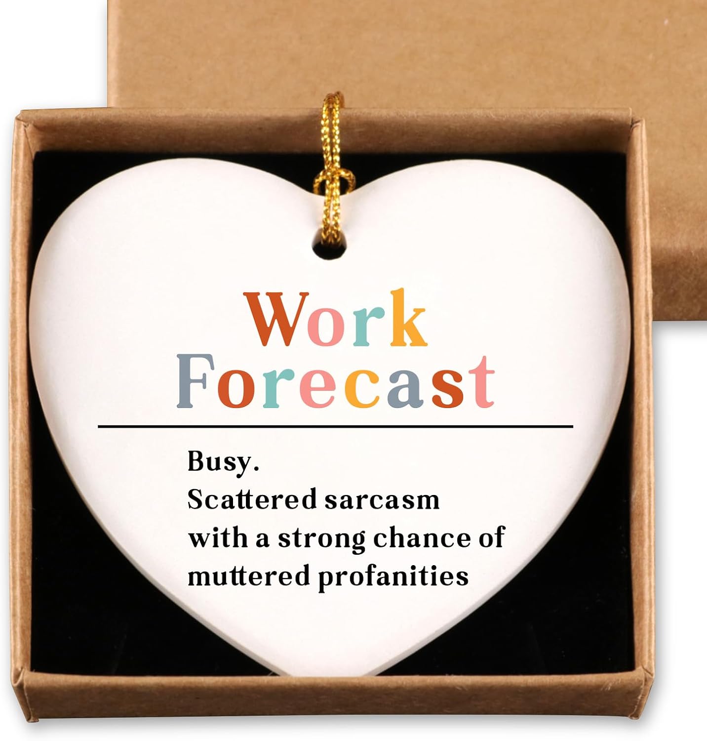 - 1.[Thank You Gifts for Coworker]:This beautiful ornament makes a great keepsake gift ,printed with words “Work forecast busy. Scattered sarcasm with a strong chance of muttered profanities''. You will always cherish the people who love you.