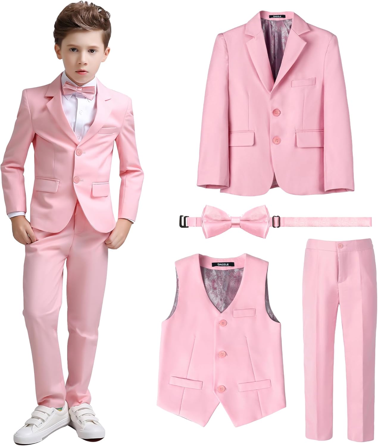 Boys Slim Fit Suit, Formal Tuxedo Dress Suit Set for Teenage Boy 4 Pcs Toddler Suits
