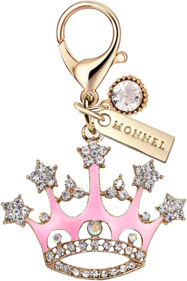 MC142 Adorable Crystal Queen Crown Lobster Clasp Charm Pendant with Velvet Bag (Pink,1 piece)