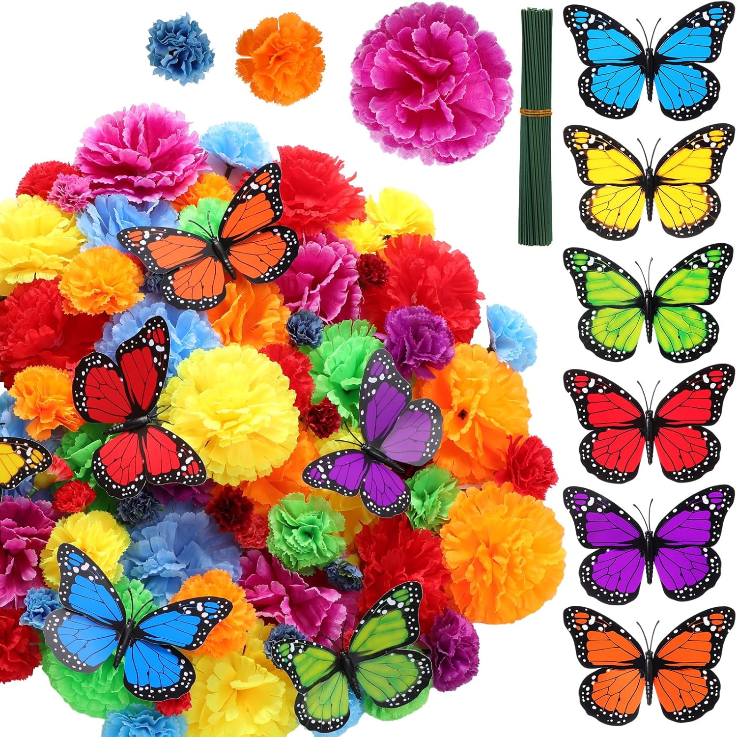 - Vibrant Color Palette: the marigold flowers heads with butterflies come in a stunning array of bright colors, including red, orange, yellow, green, blue, and purple; These silk marigold heads and PVC butterflies maintain their lively colors over time; Whether for a festive celebration or everyday decor, this kit adds a dynamic touch to most spaces