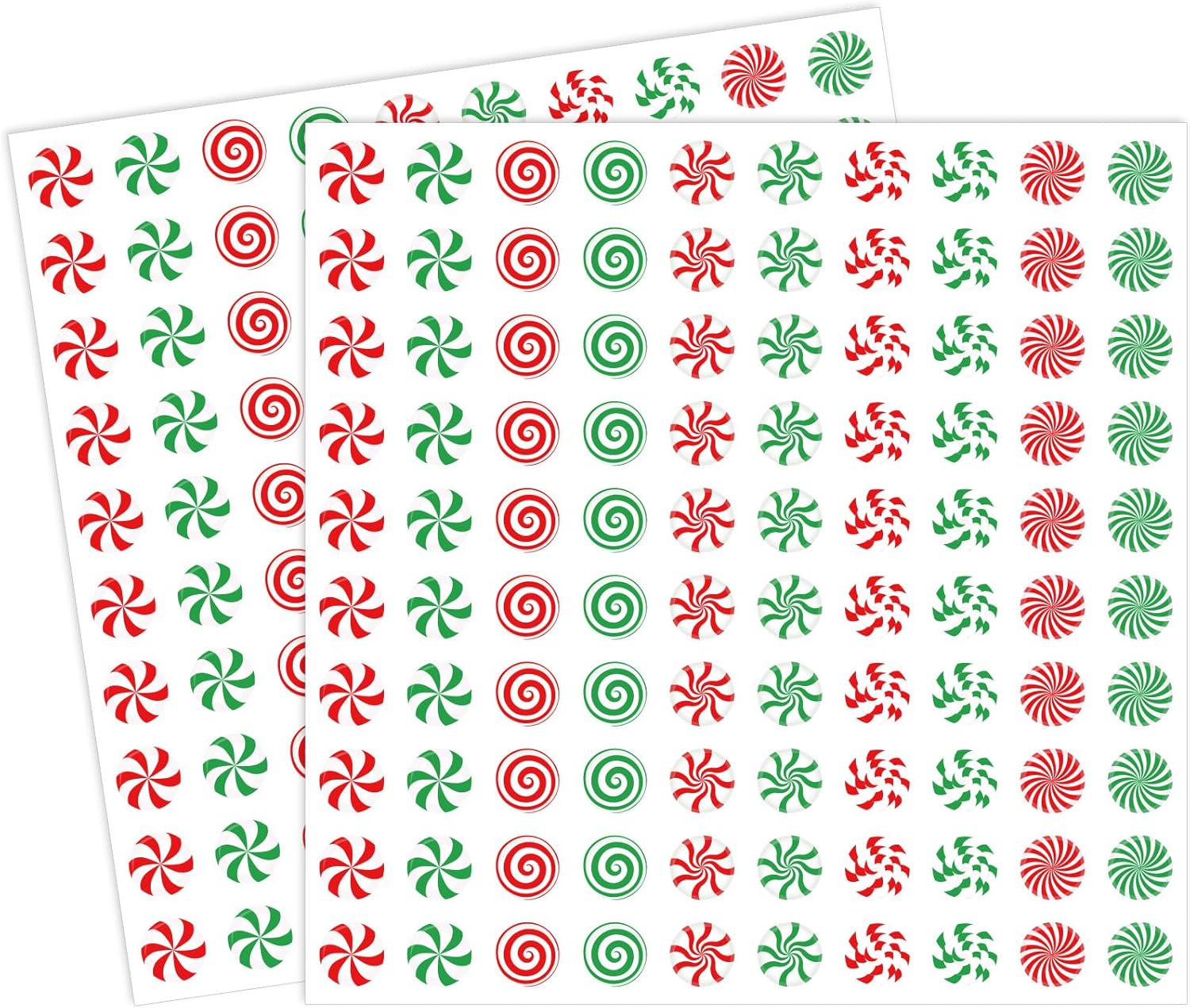 Whaline 1000Pcs Christmas Candy Stickers Mini Red Green Xmas Paper Labels Self-Adhesive Peppermint Decals for Craft Scrapbook Envelope Card, 10 Sheets
