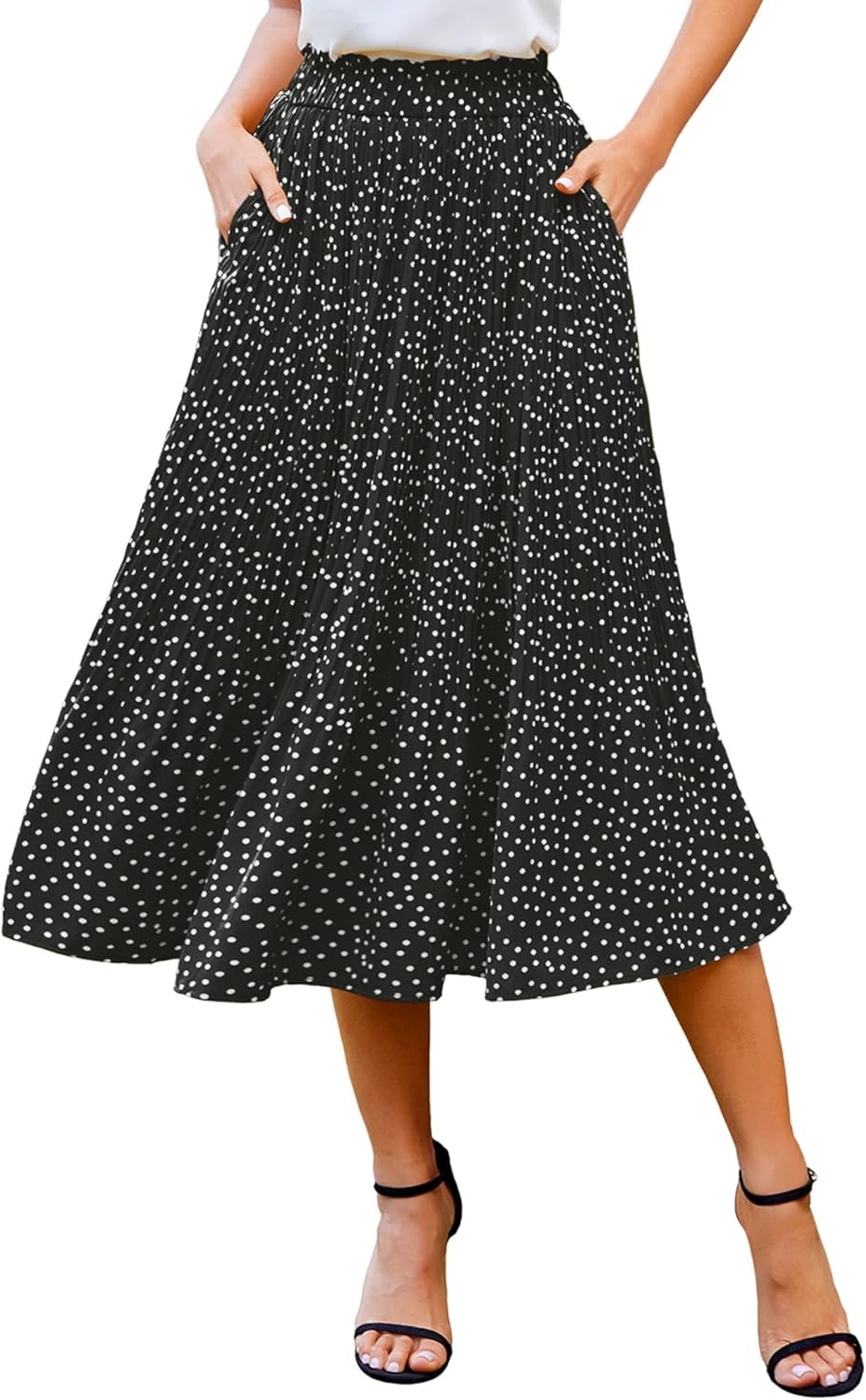 Zeagoo Women's Midi Skirts High Waisted Pleated A-Line Swing Skirts Summer Floral Long Skirts with Pockets