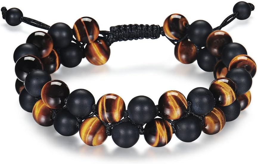 HASKARE Tiger Eye Stone Bracelet Men Women - Natural Energy Stone Essential Oil Lava Rock Black Onyx Tiger Eye Beads Bracelet Adjustable