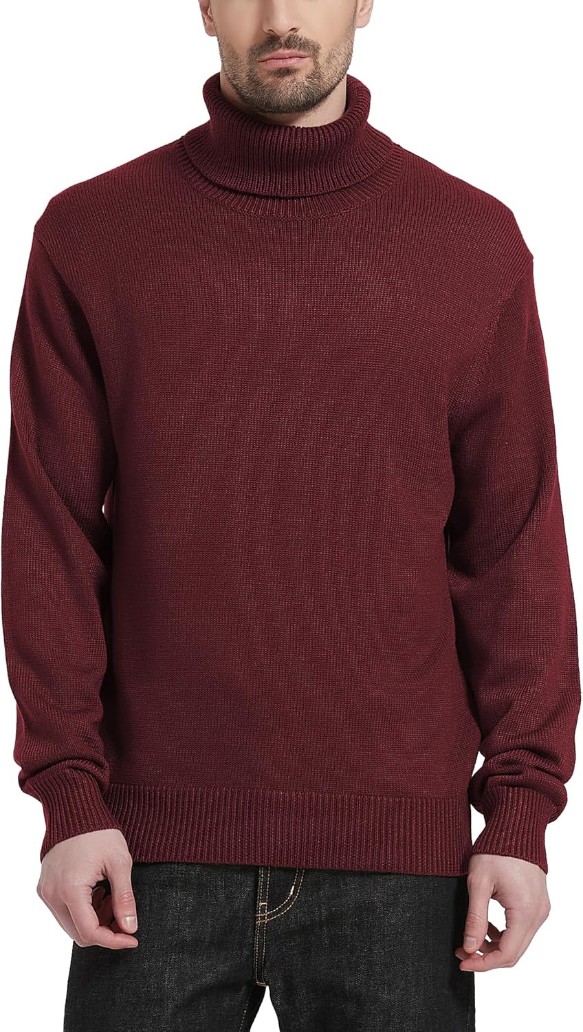 Kallspin Men's Turtleneck Sweaters Wool Blend Mid-Weight Highneck Pullover Sweaters