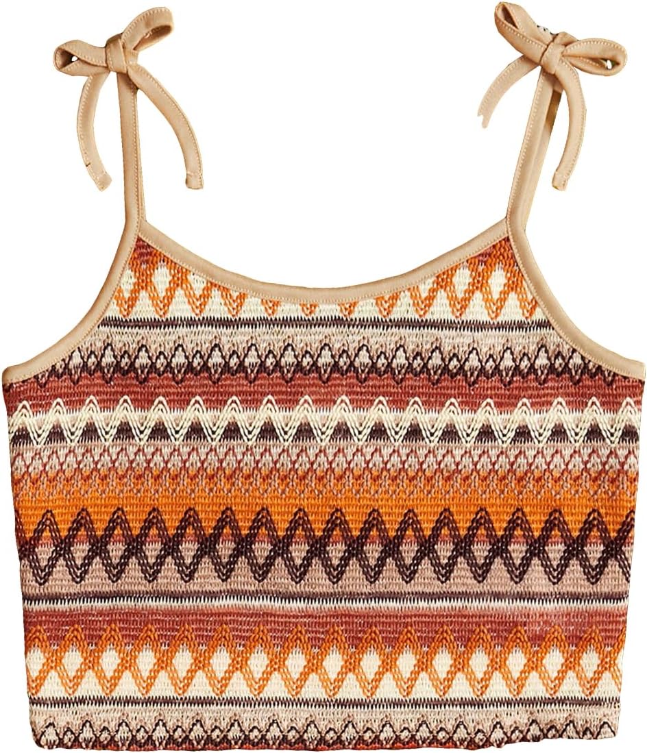 Verdusa Girl's Summer Geo Graphic Bow Knot Shoulder Sleeveless Crop Cami Top