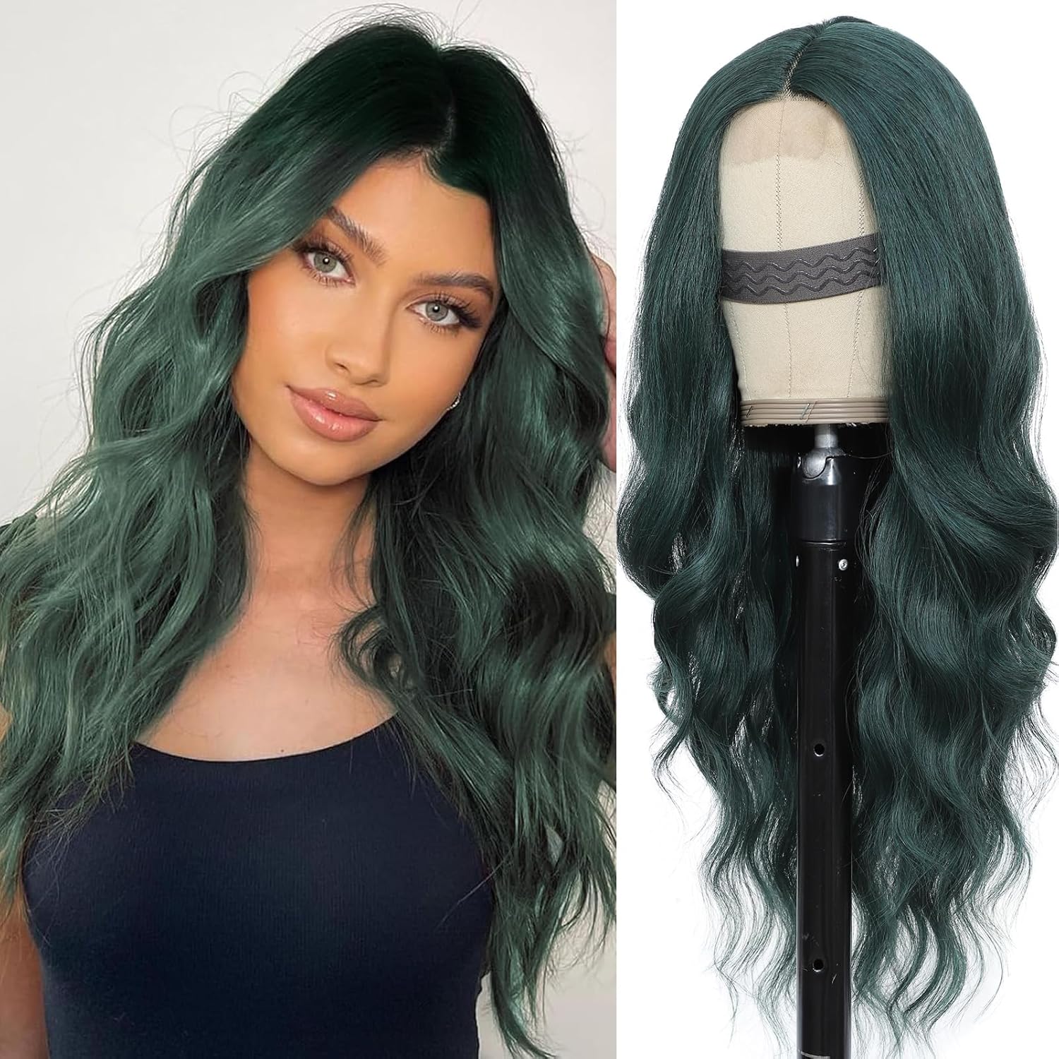 - 【Dark Green Hair Wig】This dark green wavy wig is a long, softly wavy synthetic wig that is both captivating and convenient ,the natural soft wavy curls creat a glamorous look