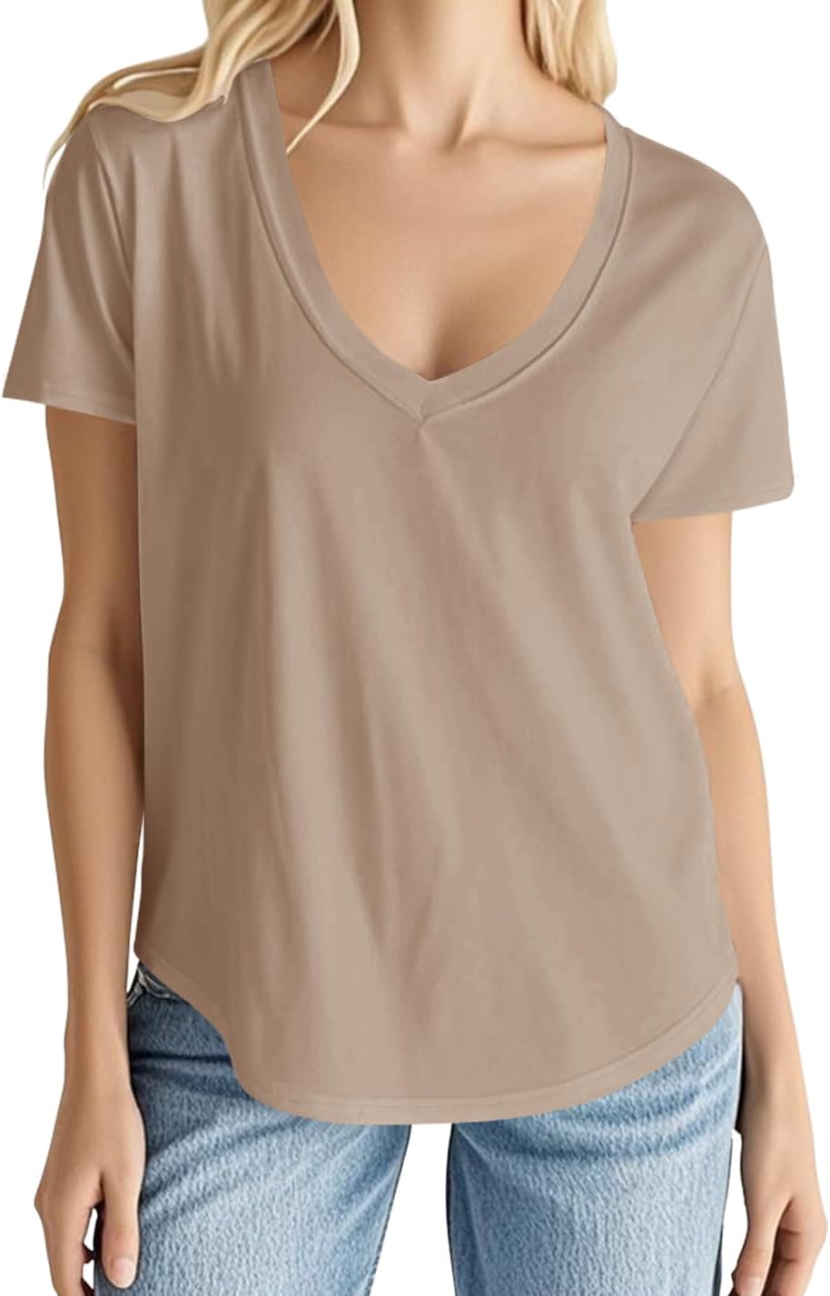 Smile Fish Women Short Sleeve V Neck T-Shirts Loose Fit Tops Summer Casual Top Tees