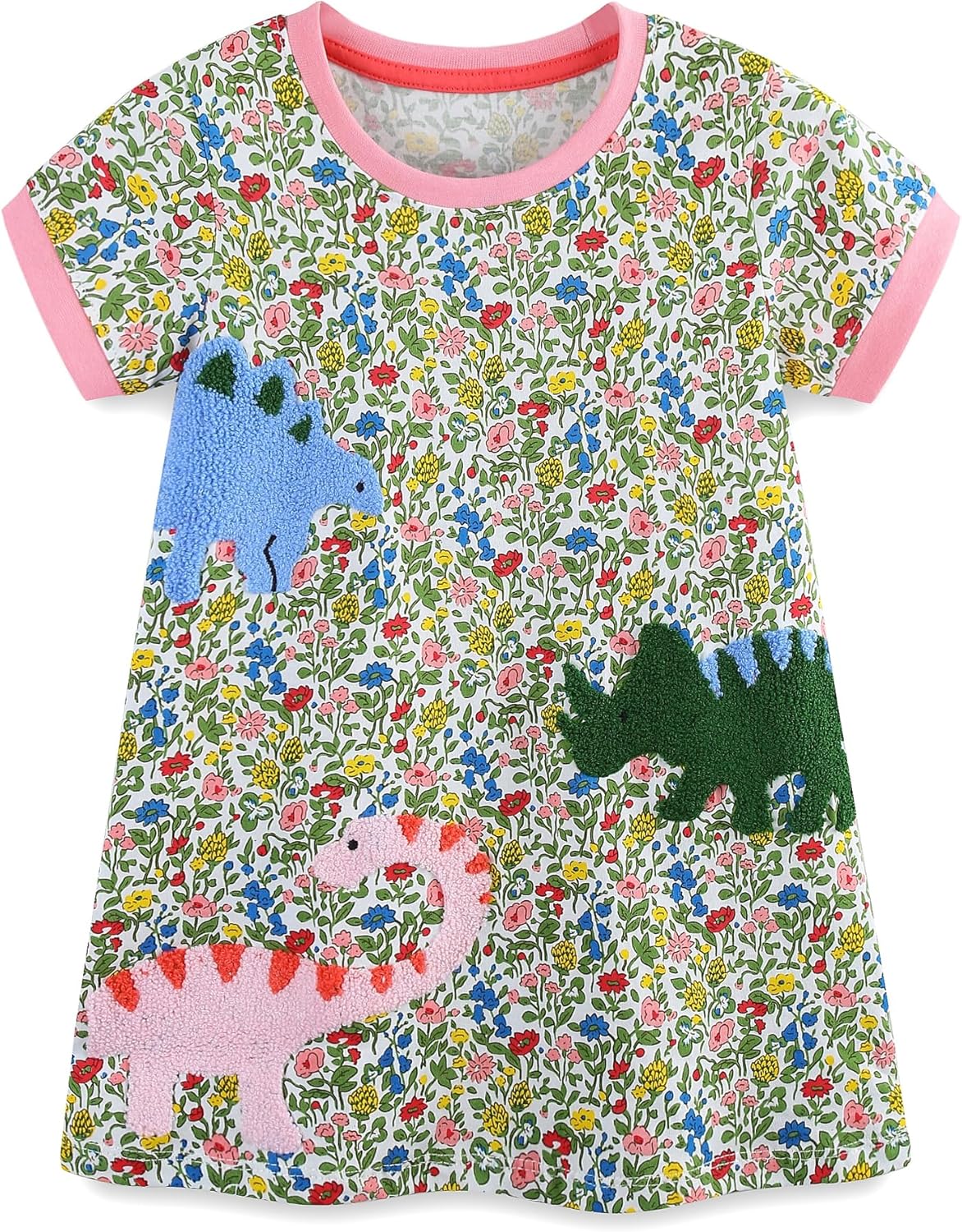 FreeLu Girls Cartoon Appliques Dress Cotton Summer Short Sleeve Dresses Casual Jersey Skirt