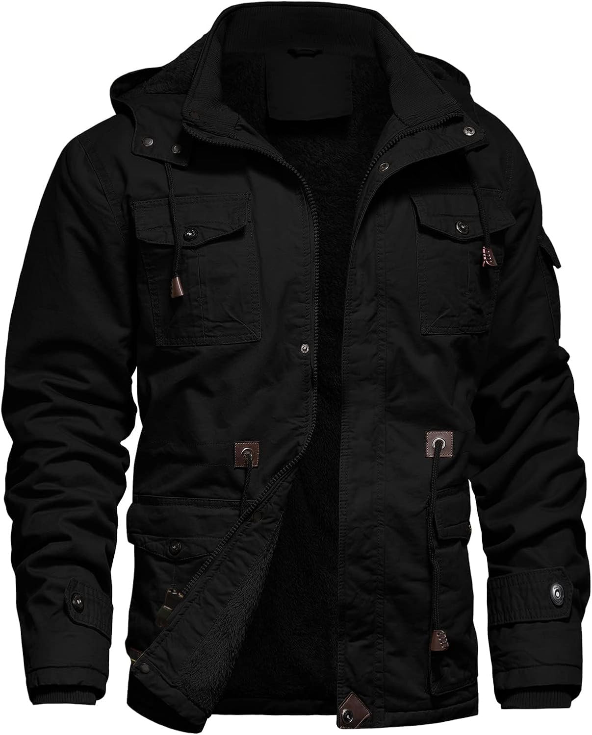 Men's Winter Jacket Military Jacket Fleece Lined Warm Cargo Jackets Removable Hood Cotton Work Coat