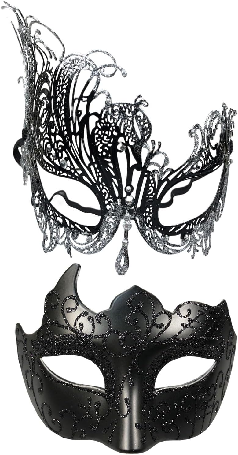 Masquerade Mask for Couple Mardi Gras Venetian Party Mask Set Halloween Costume Accessory