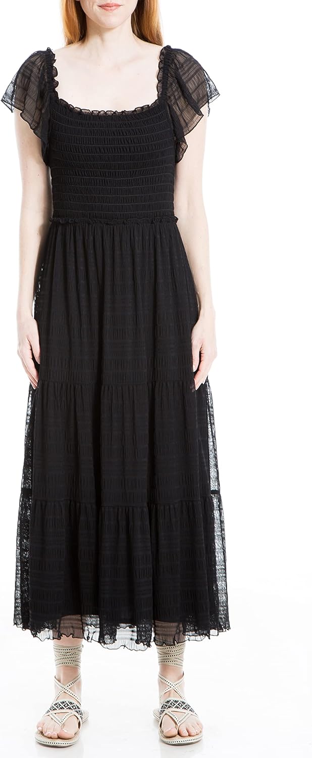 Max Studio Womens Flutter Sleeve Smocked Midi Dress