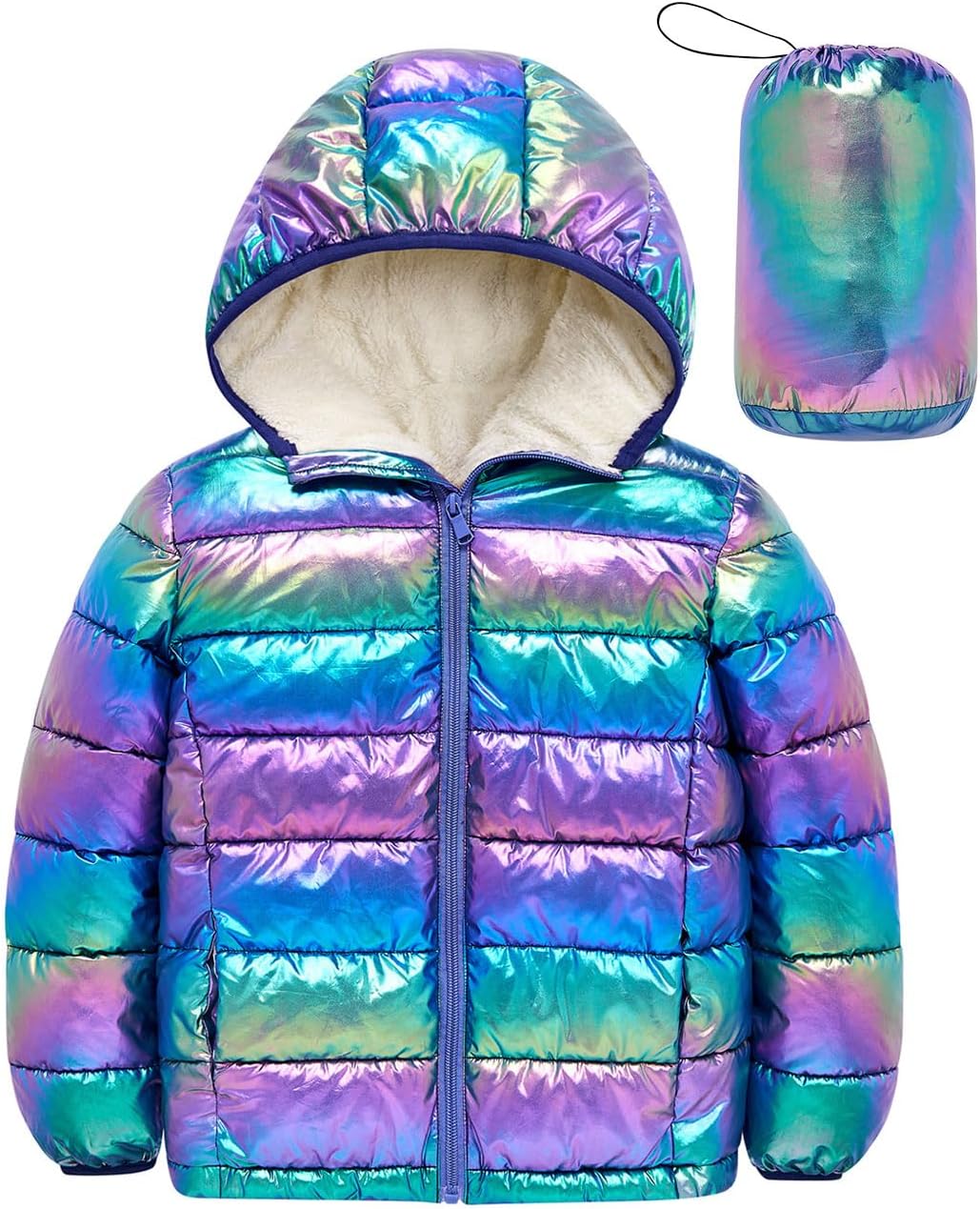 Lovekider 4-12 Years Girls Metallic Shine Hooded Puffer Jacket Packable Warmth Padded Winter Coat
