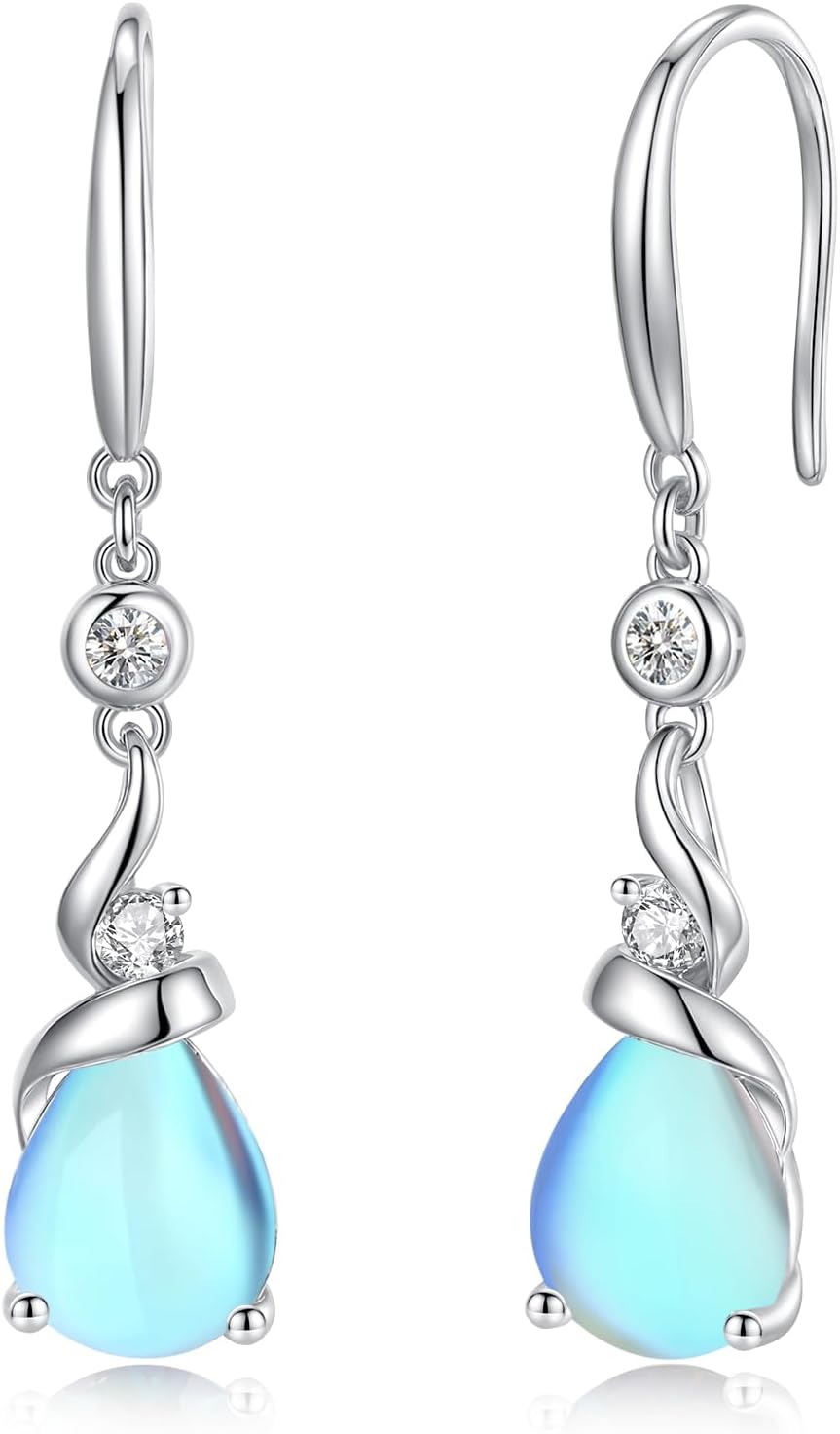 FANCIME Women Drop Earrings 925 Sterling Silver with Pear Gemstone Dangle Birthstone Earring Fine Jewelry Birthday Gifts for Women