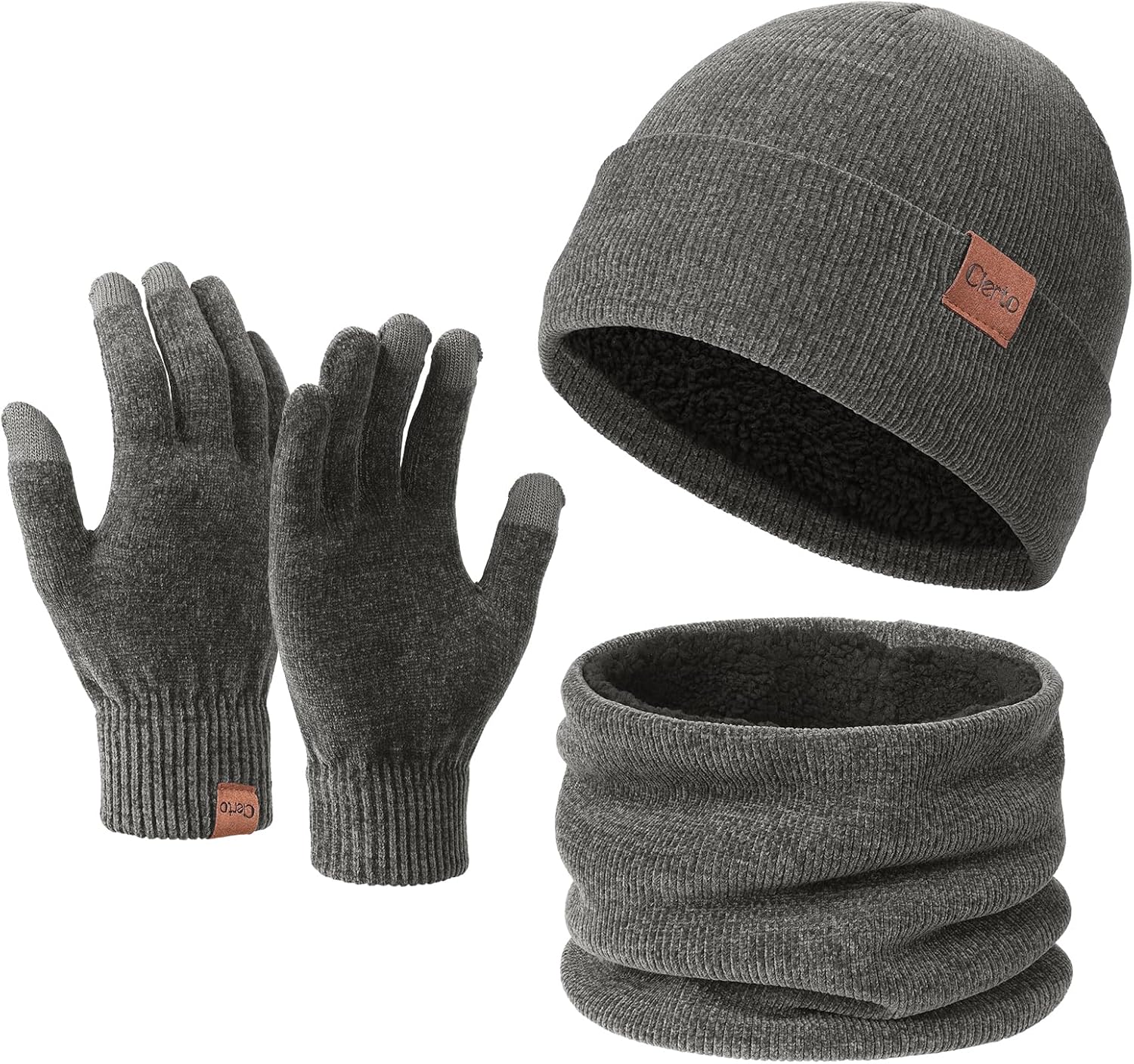 Cierto Winter Knit Beanie Hat Gloves Set for Men Women, Neck Warmer Scarf and Touch Screen Gloves