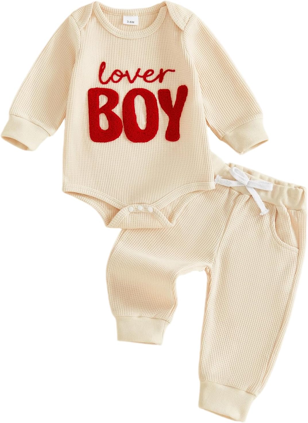 BemeyourBBs Newborn Baby Boy Valentines Outfit Embroidery Long Sleeve Romper Elastic Waist Pants Set 2 Piece Waffle Clothes