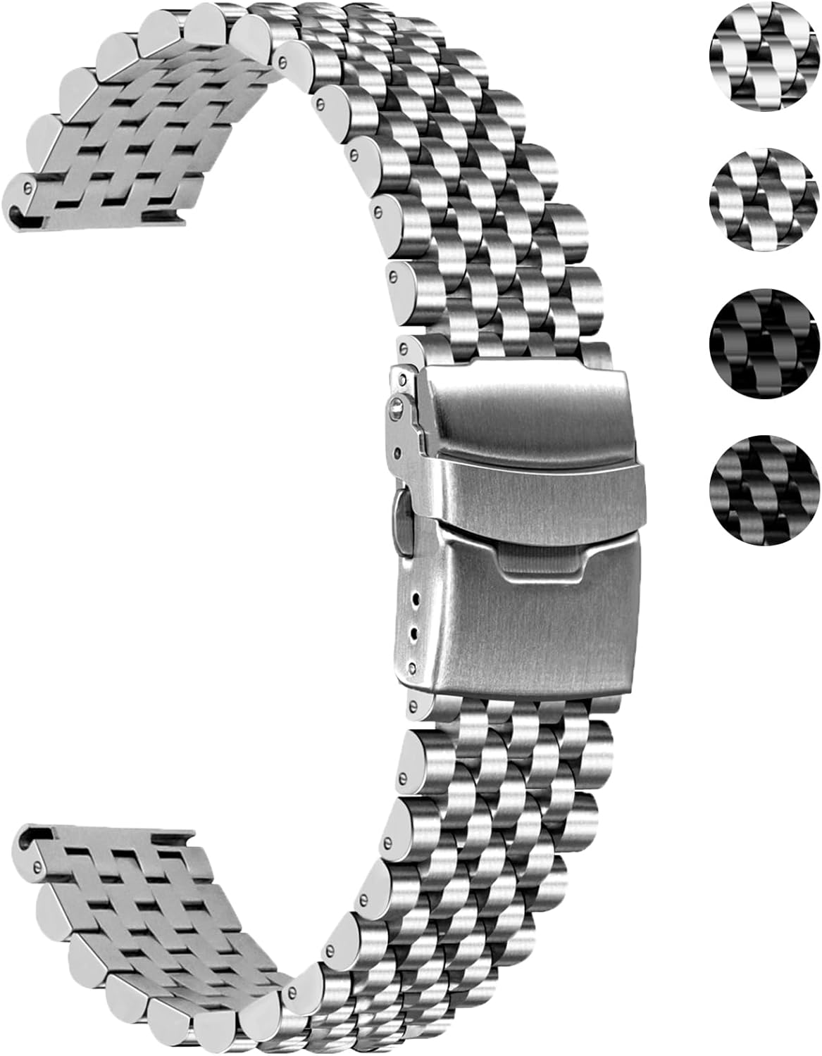 YISIWERA Quick Release Stainless Steel Watch Band 20mm 22mm, Heavy Duty Matte & Polished Metal Strap for Men and Women, Universal Replacement Bracelet with Folding Buckle