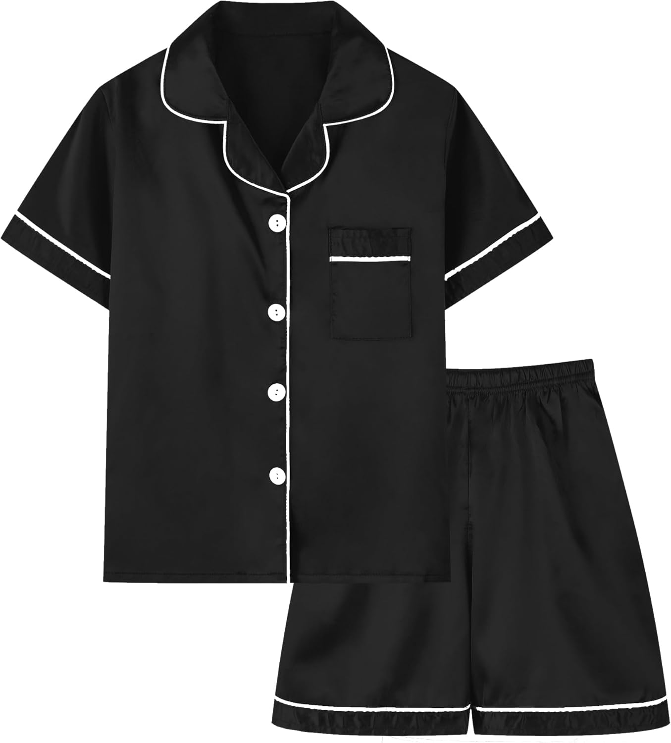 Schbbbta Boys Silk Pajamas Button Down Sleepwear Satin Nightwear 2 Pcs Pj Set