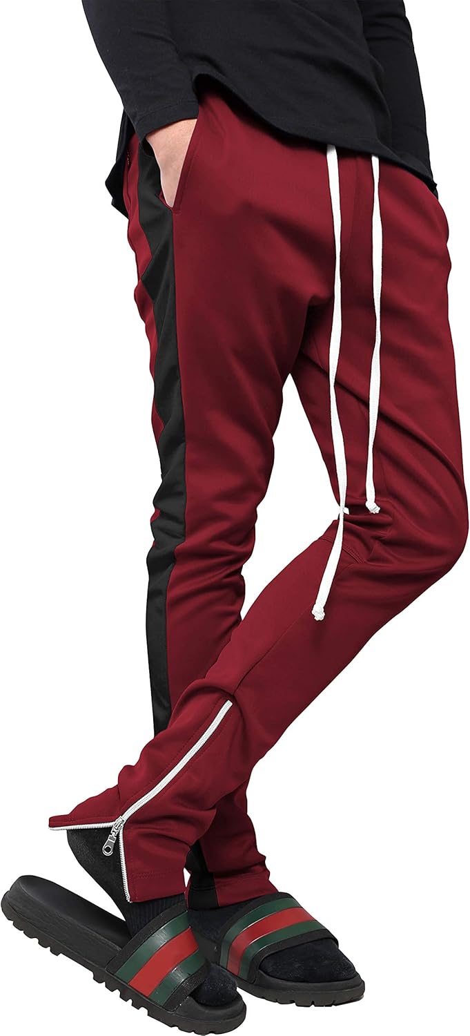 Mens Track Pants Two Tone (Small, 1vw19_Burgundy/Black)