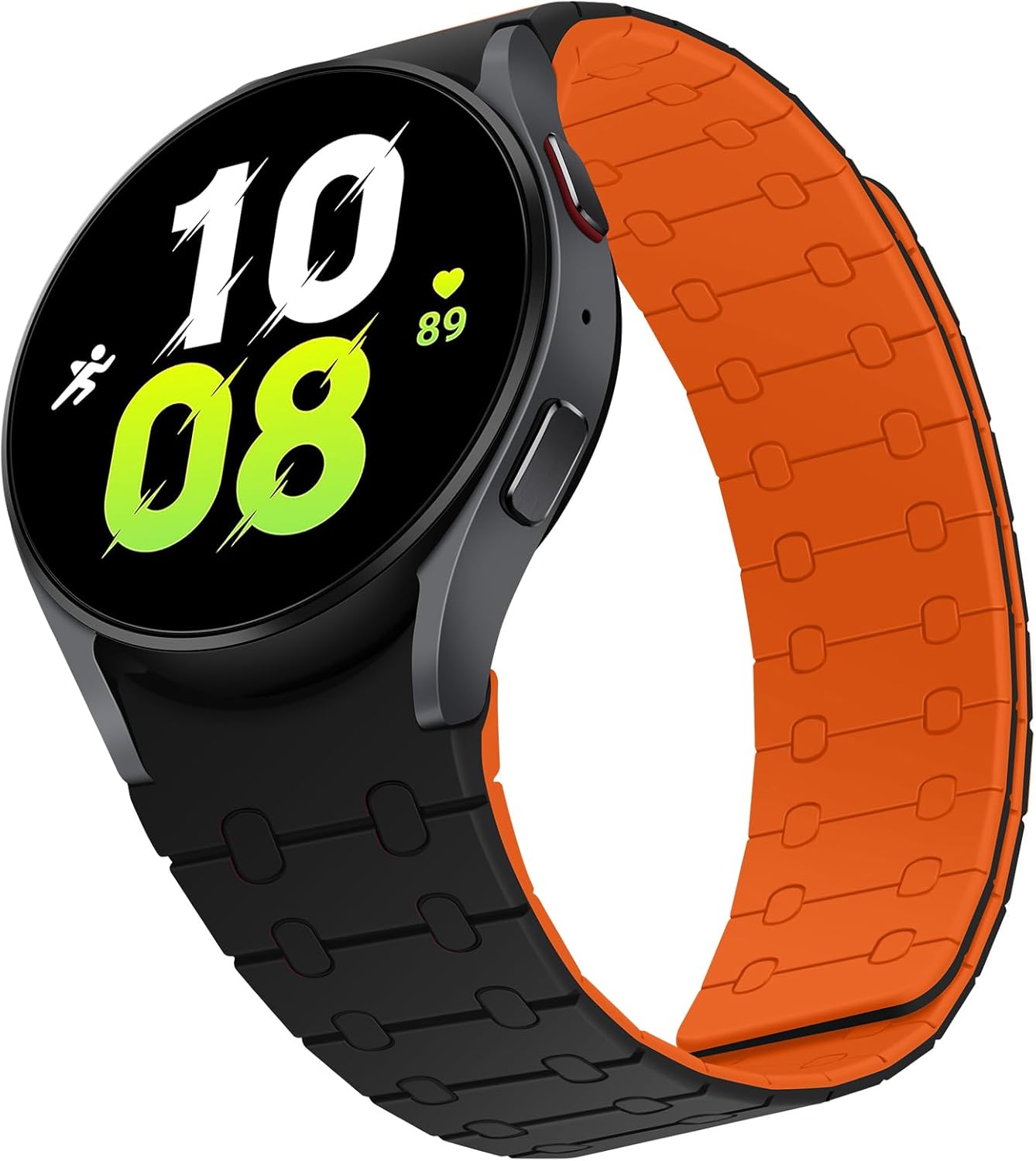 Magnetic Band Compatible with Samsung Galaxy Watch 7/FE/6/5/4 Band 40mm 44mm/Galaxy Watch 5 Pro 45mm/Watch 6 4 Classic 42mm 46mm 43mm 47mm, 20mm Silicone Sport Strap for Women Men, Black/Orange