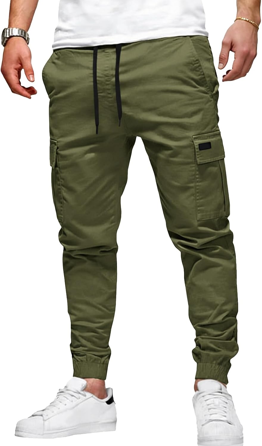Runcati Mens Cargo Pants Casual Drawstring Elastic Waist Chino Pants Stretch Outdoor Track Joggers Sweatpants