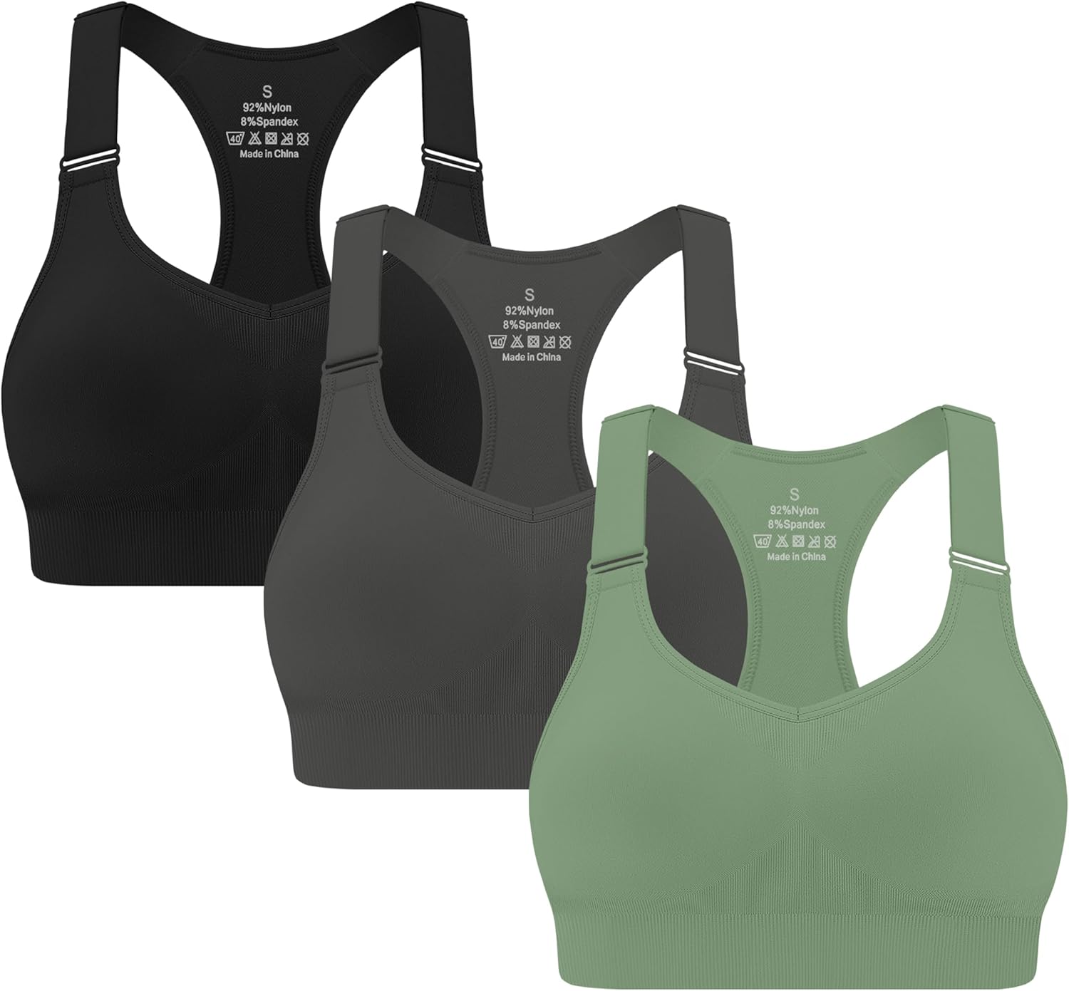 MIRITY 3-Pack Adjustable Padded Sports Bras for Women - High Support for Large Bust Workout Running Gym Fitness