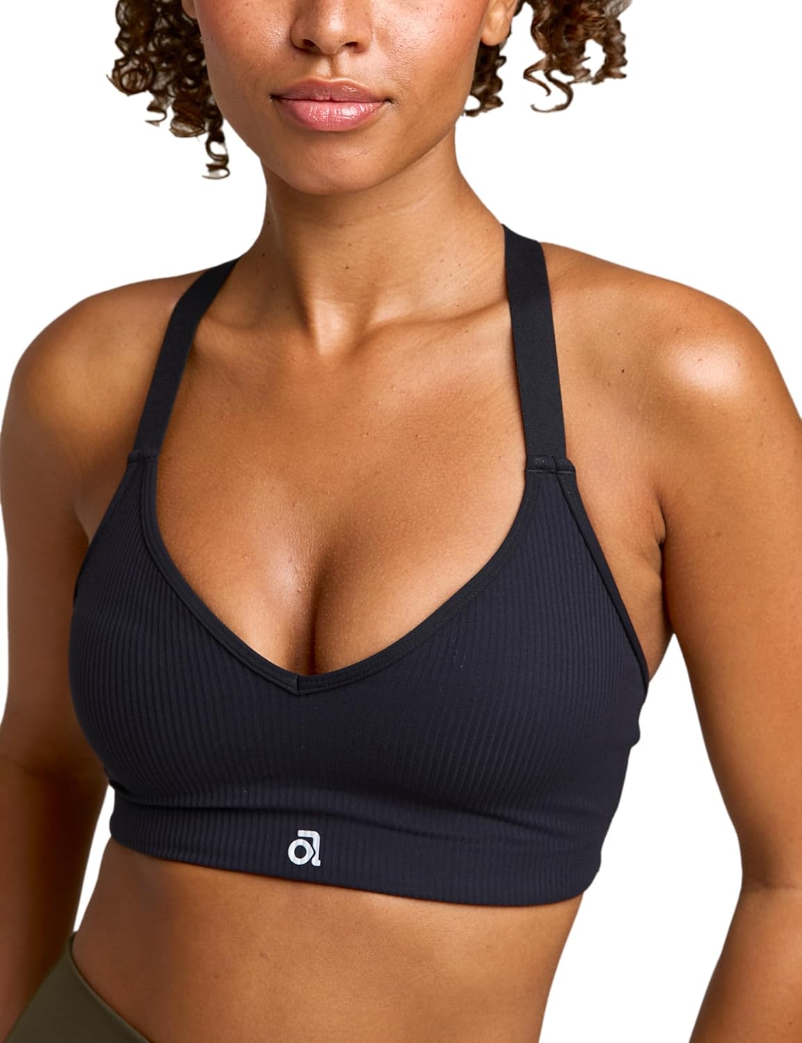 Women's Ribbed Sports Bra V Neck Padded Yoga Tank Adjustable Straps Cross Back Crop Tops
