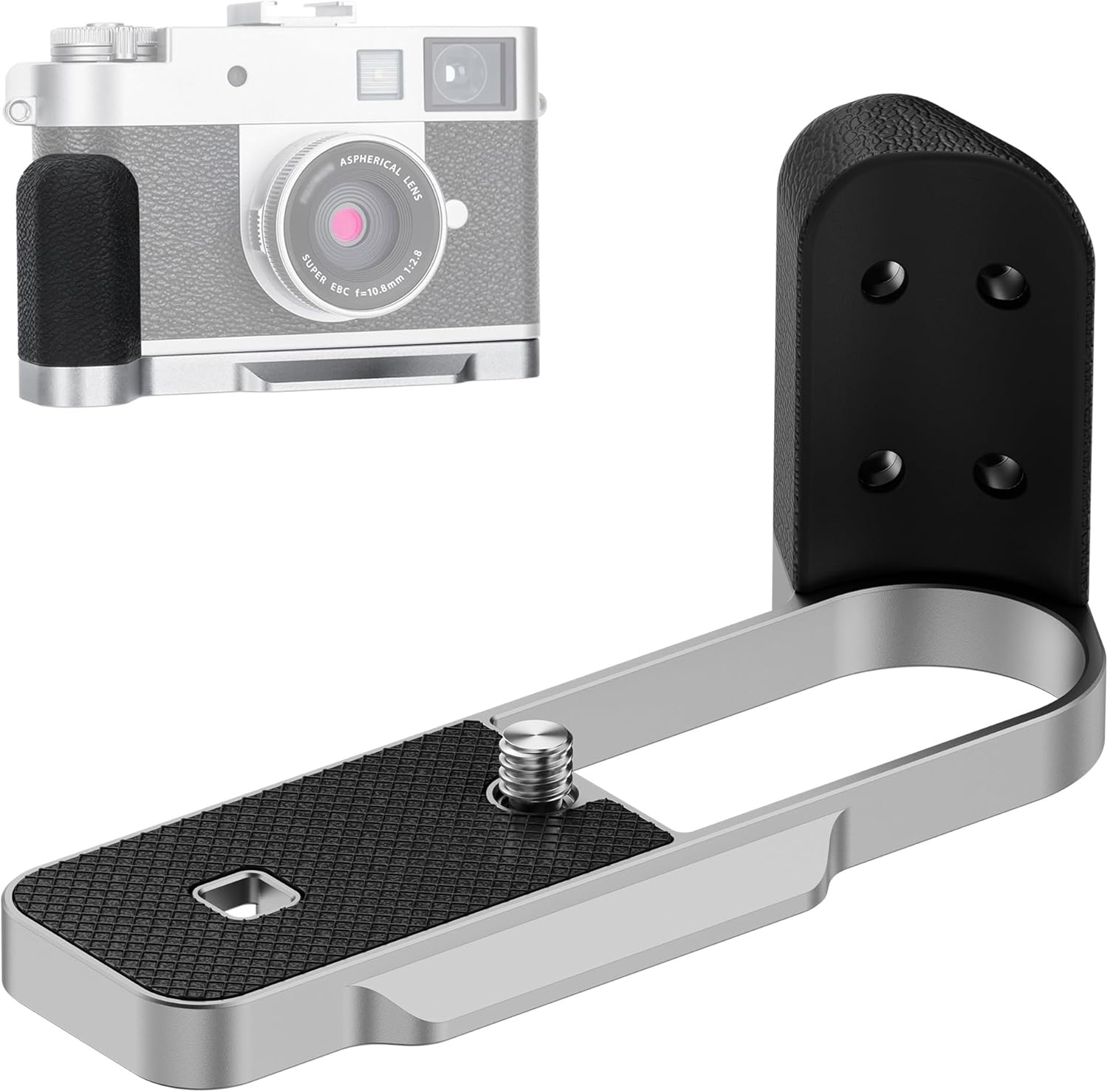 X Half Handgrip Hand Grip,Metal L-Shape Bracket Handle Holder for Fujifilm Fuji X Half Xhalf Camera,with Built-in Arca Quick Release Plate & Battery Compartment Opening Anti-Slip Microfiber Pad-Silver