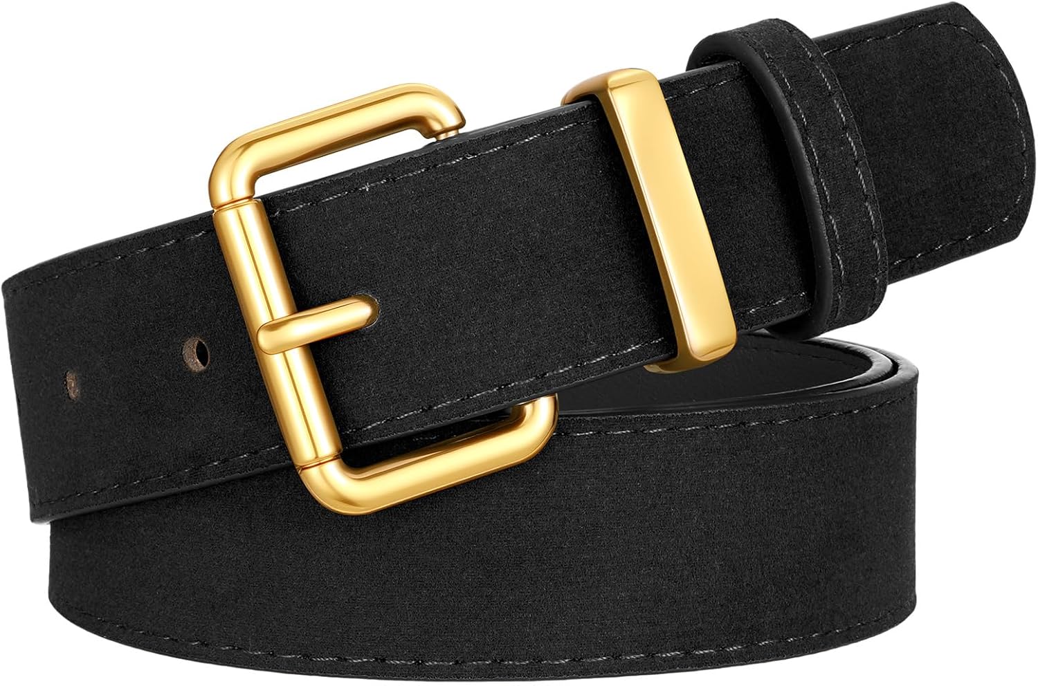 SUOSDEY Women Suede Faux Leather Belt with Gold Buckle, Ladies Waist Belts for Jeans Dresses, 1.3 Inch Width