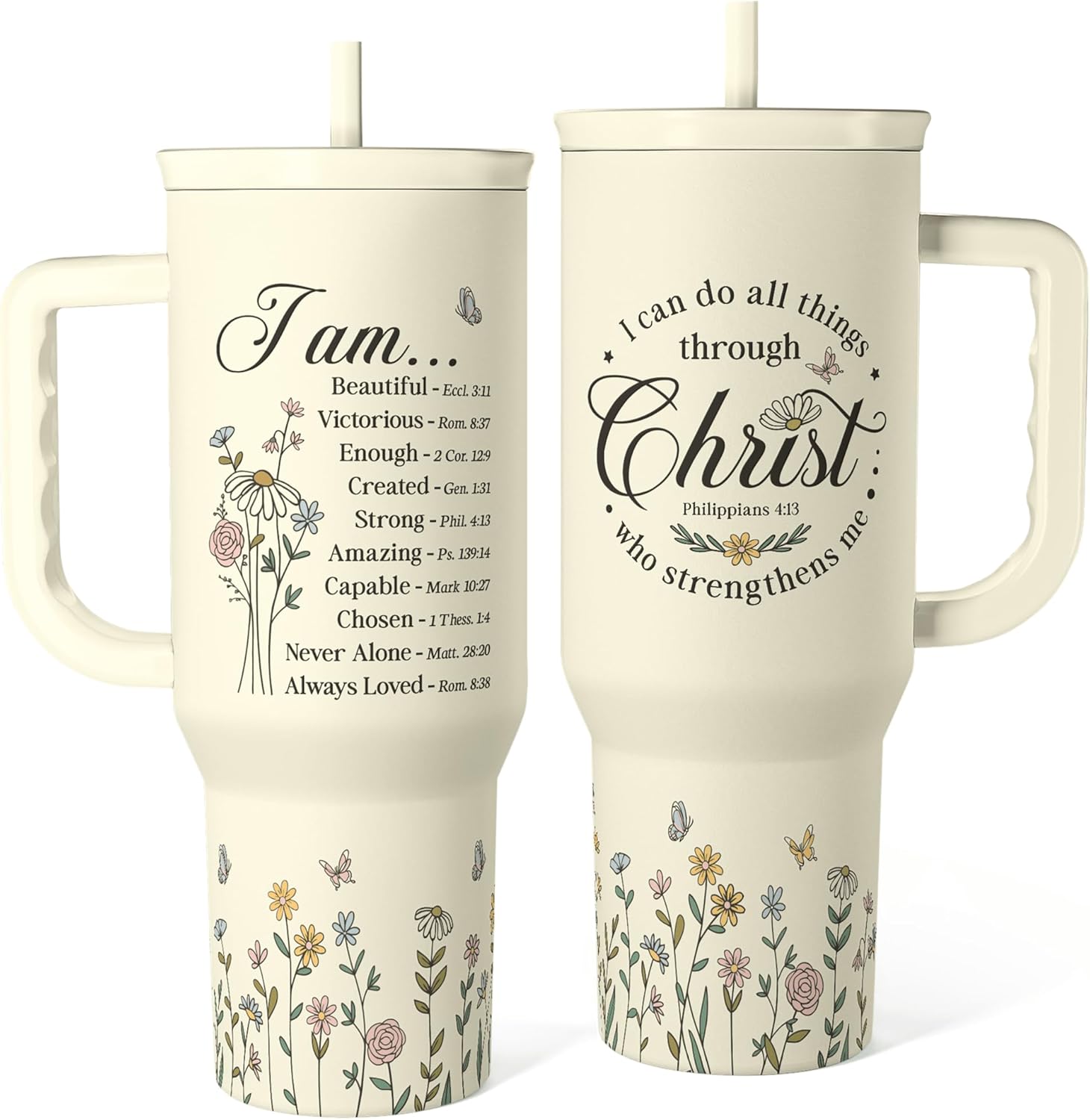 Christian Tumbler with Handle 40oz, Inspirational Gifts for Her, Religious Gift for Women Girl, Stainless Steel Insulated Coffee Travel Cup, Inspiration Gift for Christmas Birthday Mothers Day