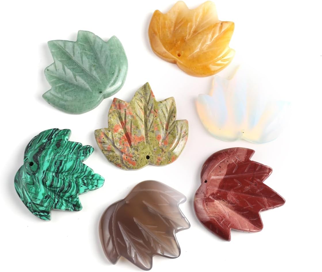 LE SKY 4 Pcs Natural Stone Pendants Maple Leaf Shape Healing Crystal Agate Stone for Jewelry Making Necklace