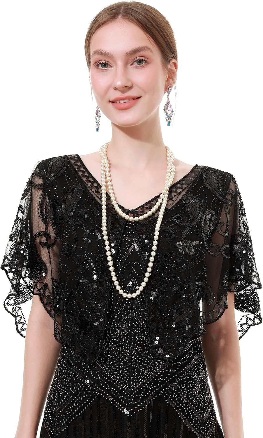 sy soul young Women 1920s Shawl Wrap Sequin Flapper shawl Cap Cover Up for evening dresses Wedding Bridal Gatsby Party