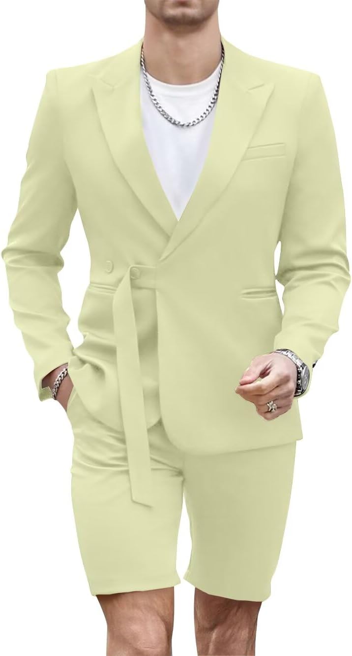 Shorts Suits for Men 2 Piece Slim Fit Summer Suit Outfit Two Buttons Peak Lapel Casual Prom Suit Beach Wedding Tuxedo