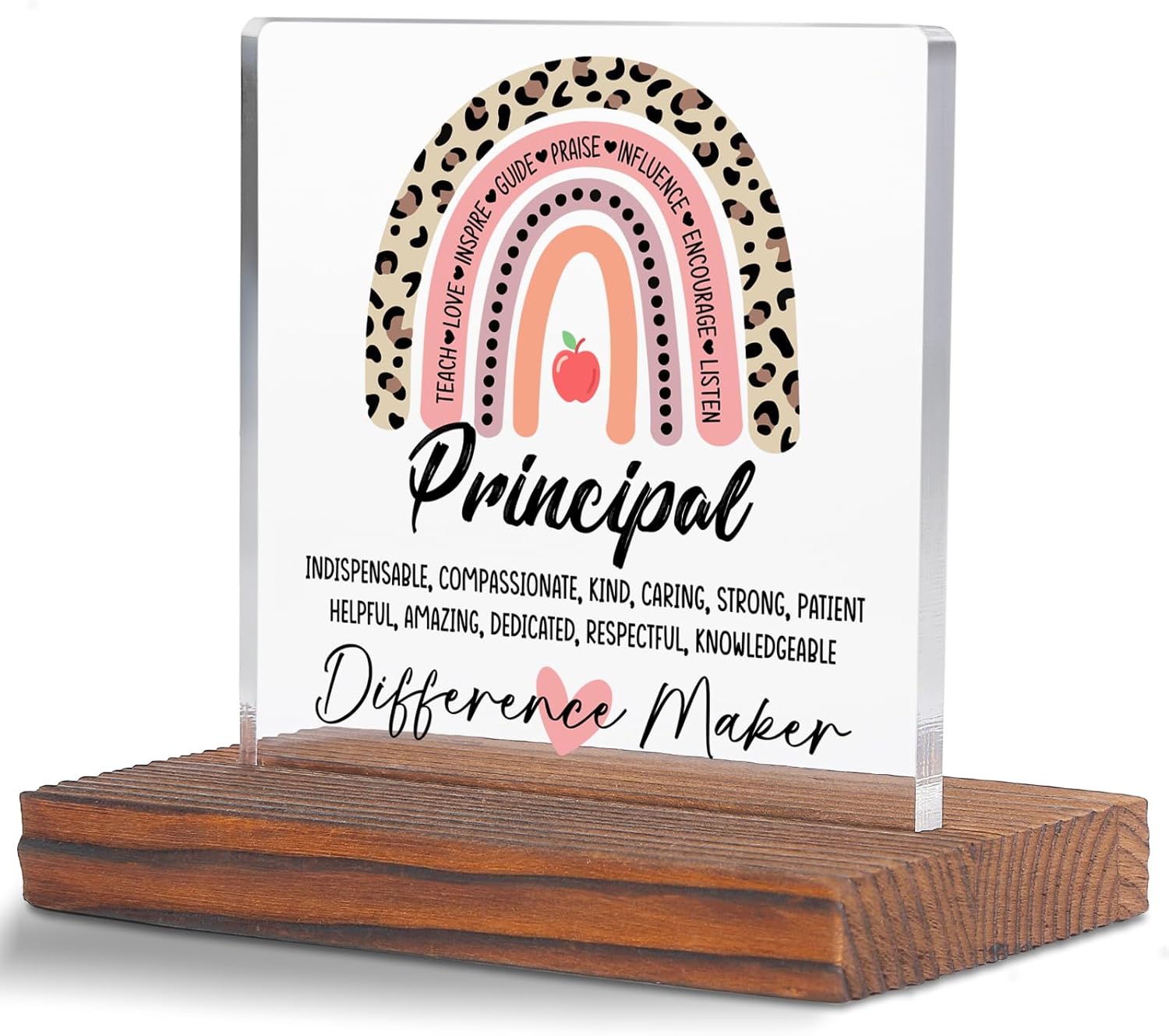 Principal Acrylic Desk Sign for Women Men, Christmas Birthday Gift for School Principal, Appreciation Office Decor for Principal’s Day, Graduation, Retirement TZ229