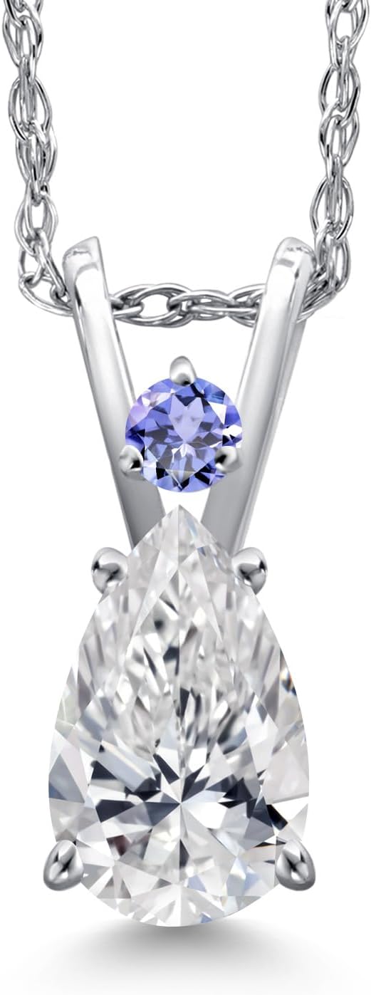 Gem Stone King 14K White Gold DEF Lab Grown Diamond and Blue Tanzanite Pendant Necklace for Women | 0.56 Cttw | Gemstone April Birthstone | Pear Shape 7X5MM | With 18 Inch Chain