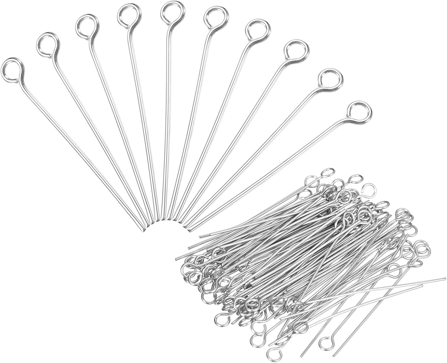 MECCANIXITY 1000Pcs Eye Pins Jewelry Findings 22 Gauge 28mm Iron Eye Pins for Jewelry Making DIY Craft Necklaces Bracelets Earrings 22 Gauge 3.2mm Head Pins Silver