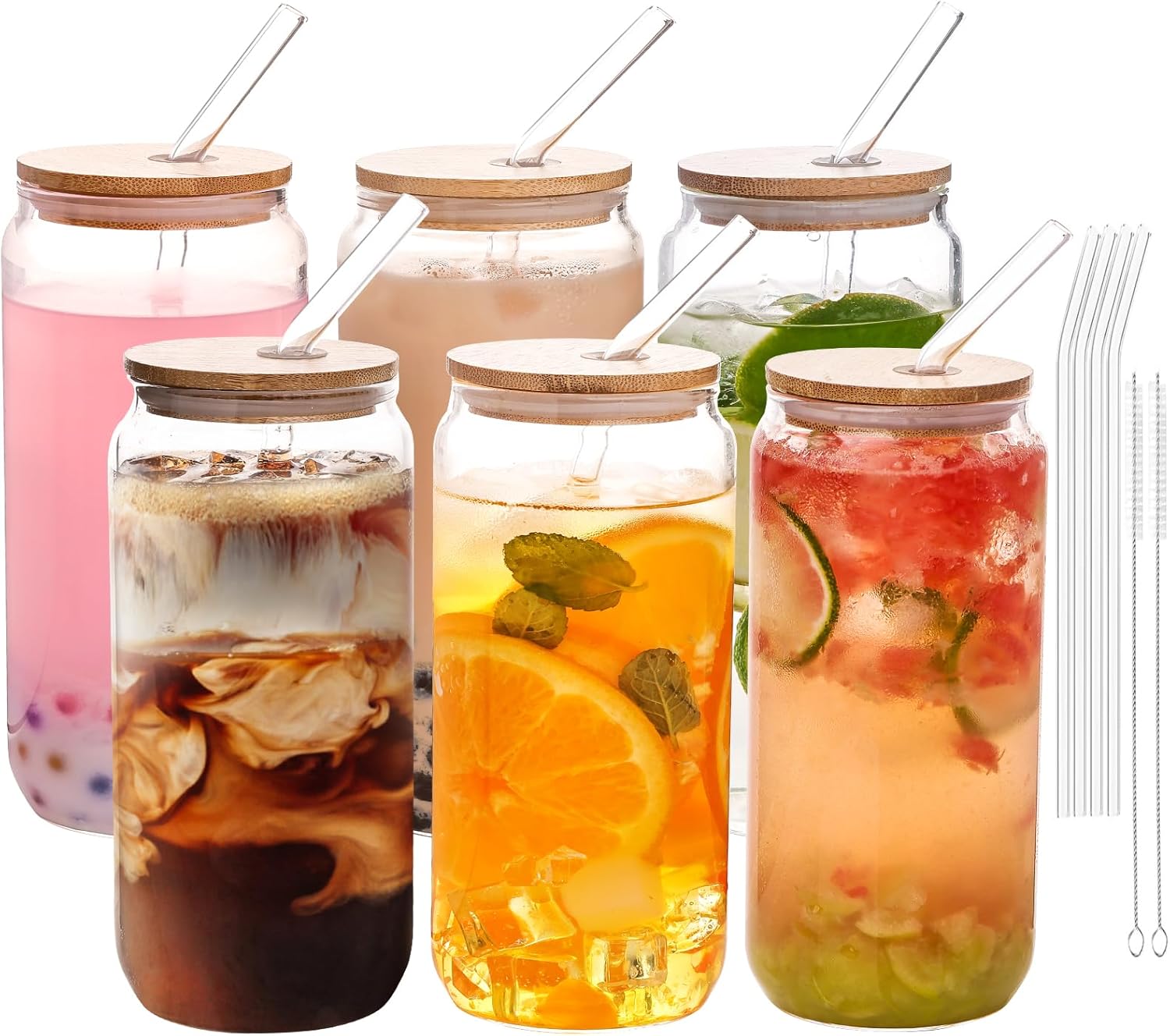 - Complete Beverage Enjoyment: Whether you're a home mixologist or simply appreciate a well-designed drinking glass, our set has you covered. With included reusable glass straws and eco-friendly bamboo lids, you can effortlessly elevate your drinks, from sangria to bubble tea. Plus, they make for a convenient on-the-go beverage option.