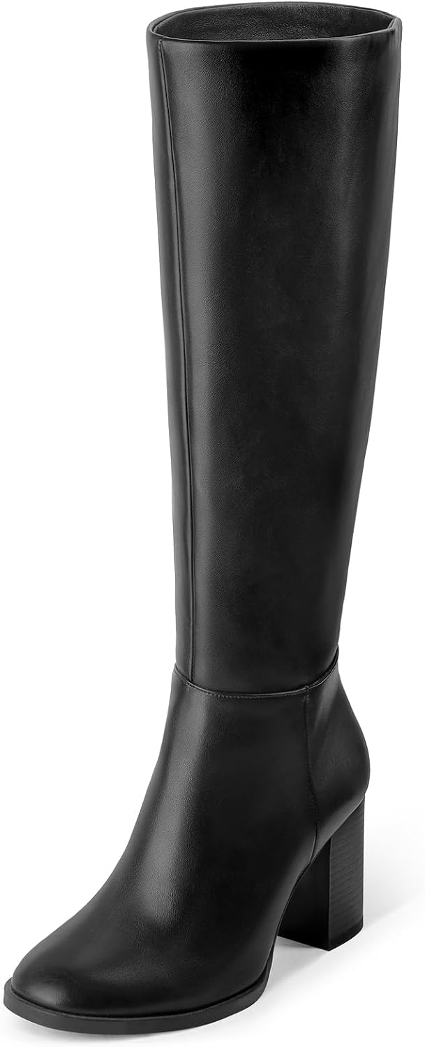 MUCCCUTE Knee High Boots for Women - Square Toe Chunky Block Heel Boots with Side Zipper Pull On Tall Boot